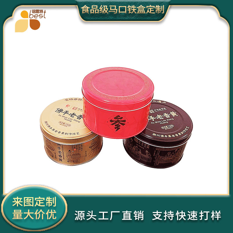 材质:0.23-0.25MM一级马口铁(这款蜜饯铁盒属于盖外卷,口内卷,包底三片铁盒,其特有的耐撞性高,抗压性好,为产品的安全提供可靠保障)