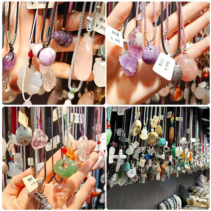 Кулон из необработанного камня аметиста с веревкой; Кулон из белого хрусталя с веревкой; Кулон из грубого камня цитрина с веревкой; Кулон из грубого камня цитрина без веревочки; Кулон из флюорита без веревки; Кулон из розового кварца без шнурка; подвеска из кожаного шнура; Кошачий глаз Розово-фиолетовая тыква; Горшок «Кошачий глаз» небесно-голубой; Халцедон Розовый 3cm Будда; Халцедон голубой 3cm Будда