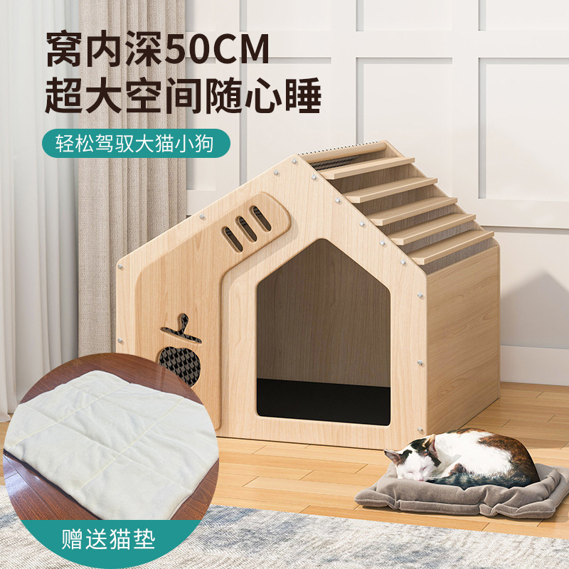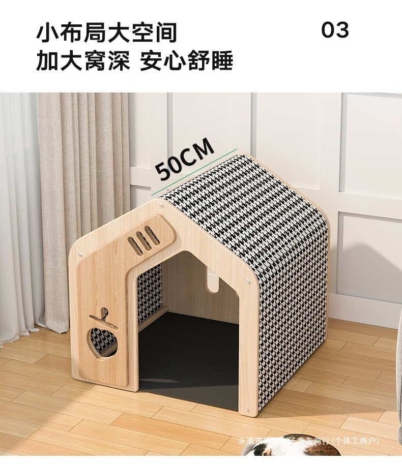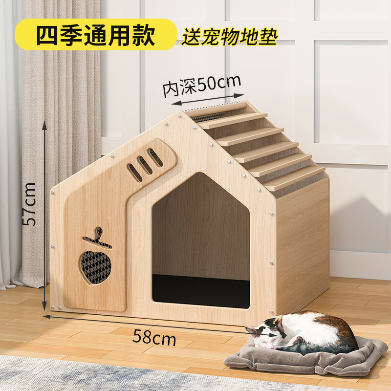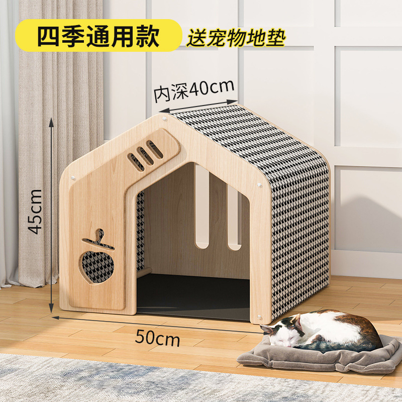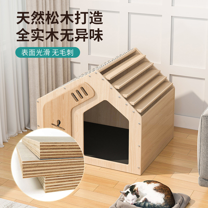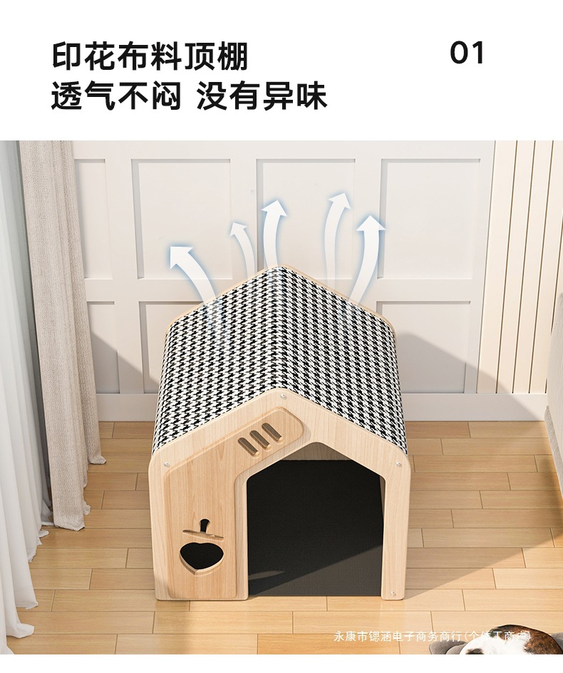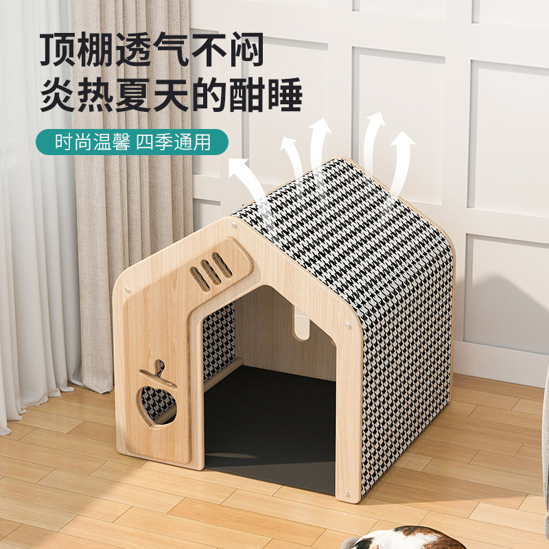Летний домик для маленьких собак и кошек, универсальный роскошный домик для собак из цельного дерева на все времена года, полузакрытый дышащий домик-вилла