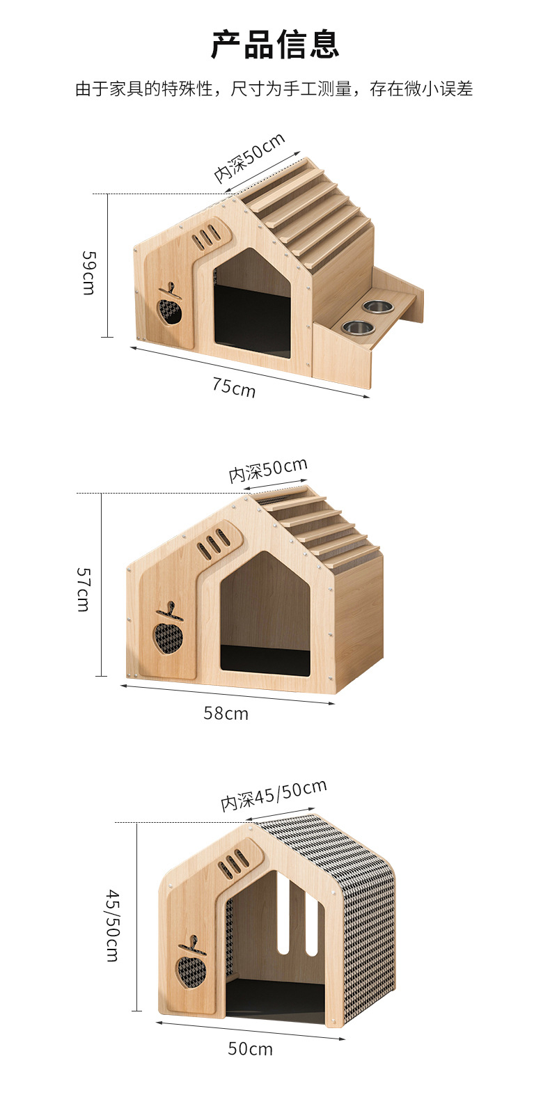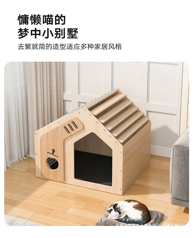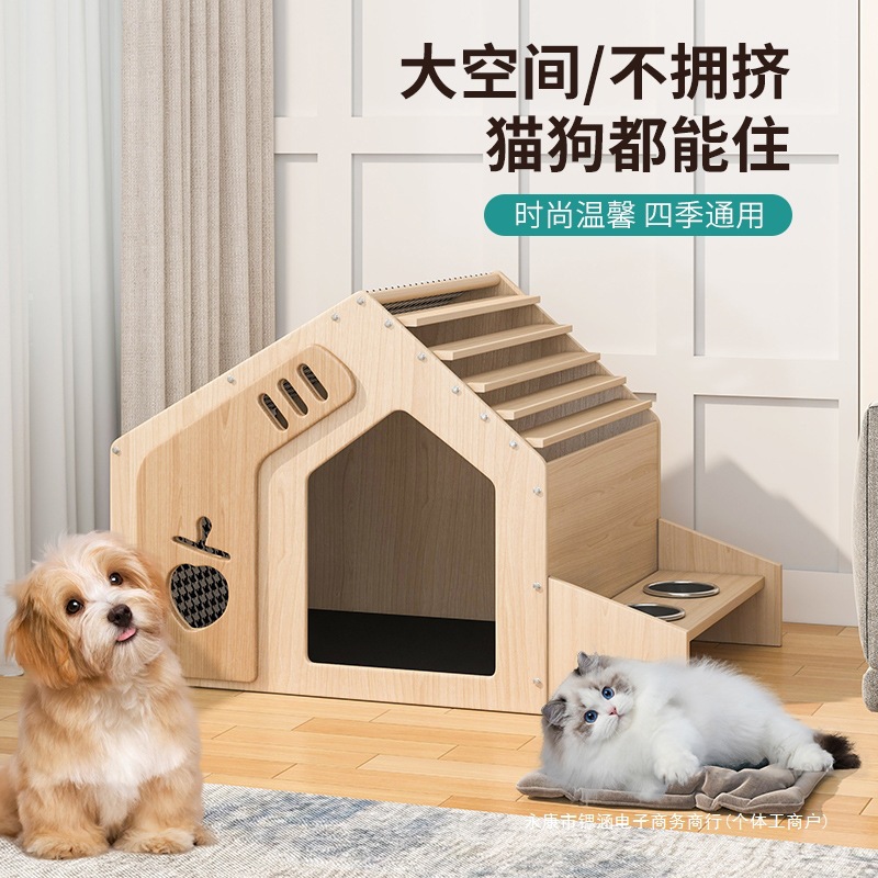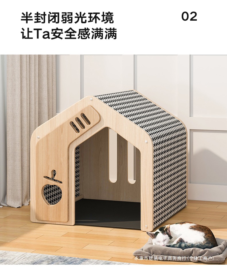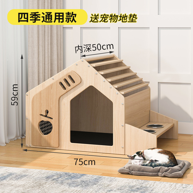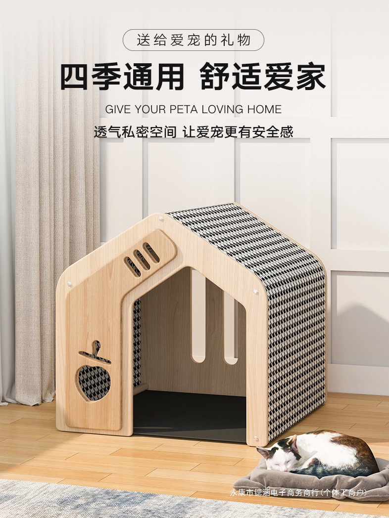 Летний домик для маленьких собак и кошек, универсальный роскошный домик для собак из цельного дерева на все времена года, полузакрытый дышащий домик-вилла