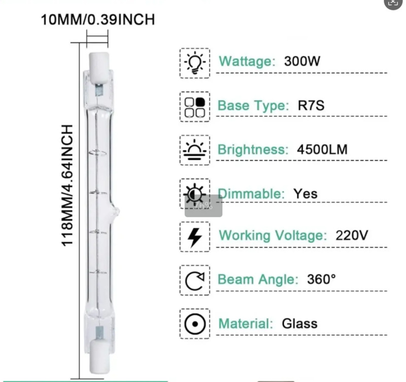 J78 220-240 В 60 Вт с регулируемой яркостью; J78 220-240 В 100 Вт с регулируемой яркостью; J78 220-240 В 150 Вт с регулируемой яркостью; J118 220-240 В 100 Вт с регулируемой яркостью; J118 220-240 В 150 Вт с регулируемой яркостью; J118 220-240 В 200 Вт с регулируемой яркостью; J118 220-240 В 300 Вт с регулируемой яркостью; J118 220-240 В 500 Вт с регулируемой яркостью; J189 220-240 В 1000 Вт с регулируемой яркостью; J254 220-240 В 1000 Вт с регулируемой яркостью; J254 220-240 В 1500 Вт с регулируемой яркостью; J78 110-130 В 150 Вт с регулируемой яркостью; J78 110–130 В, 200 Вт с регулируемой яркостью; J78 110-130 В 250 Вт с регулируемой яркостью; J118 110-130 В 300 Вт с регулируемой яркостью; J118 110-130 В 500 Вт с регулируемой яркостью