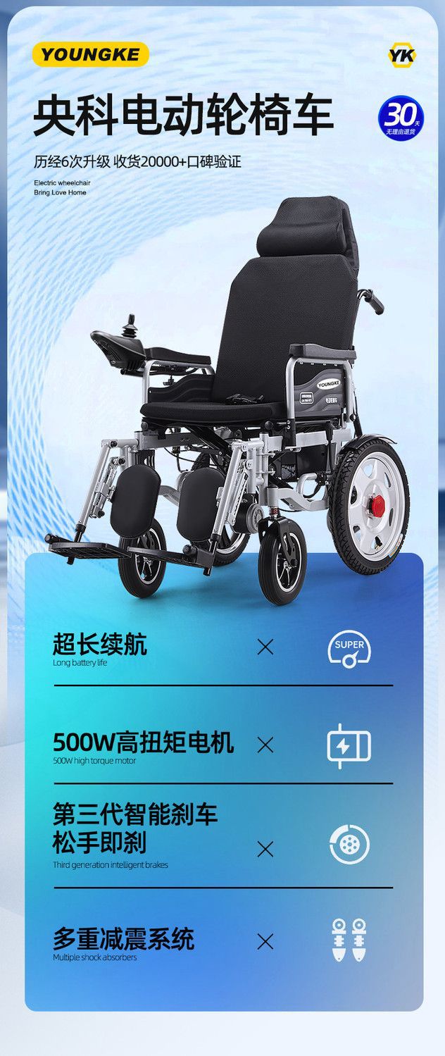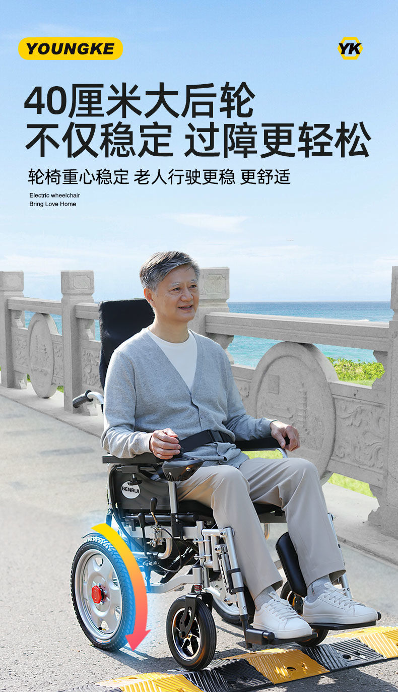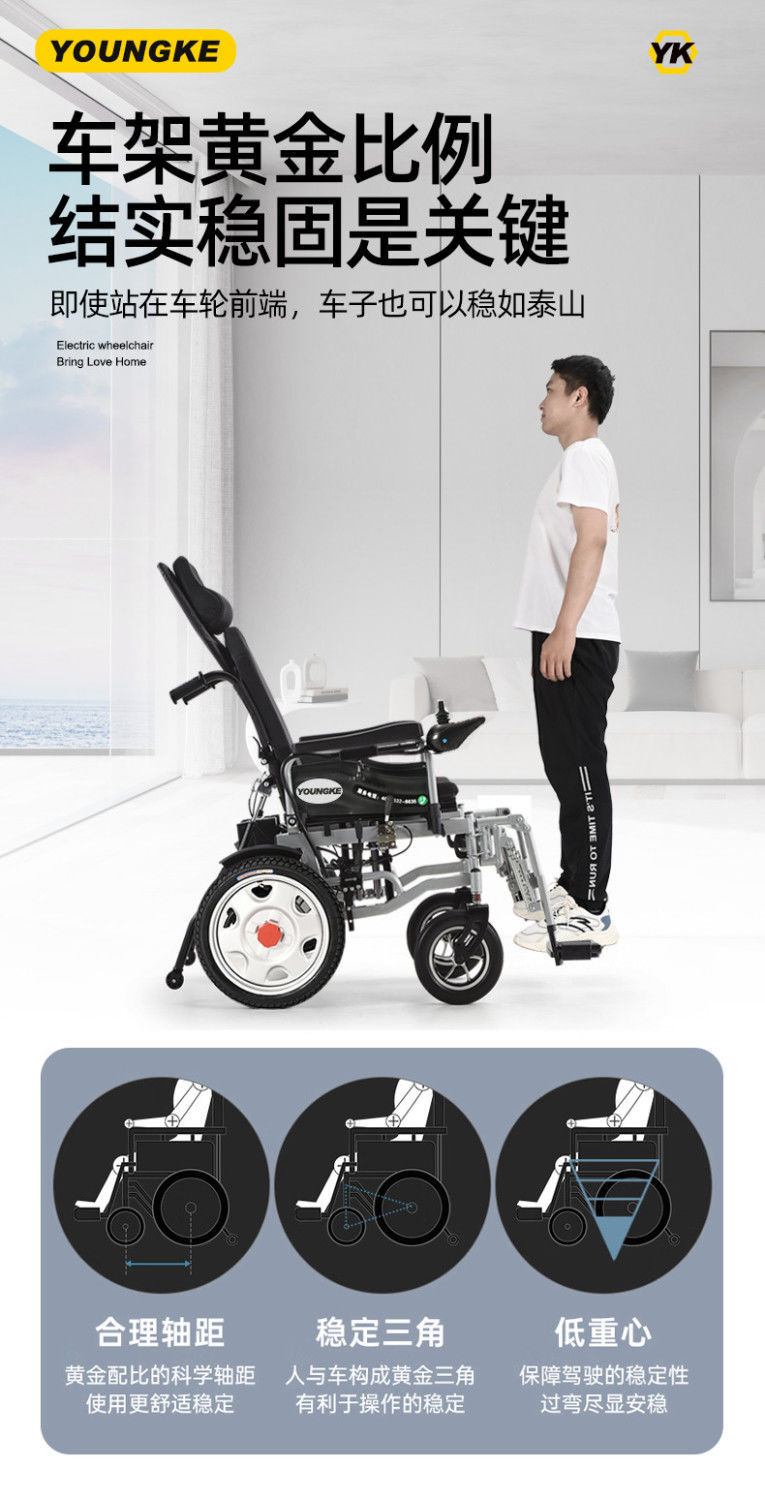 Электрическая инвалидная коляска Yangke — это легкий, складной, умный, полностью автоматический четырехколесный скутер для пожилых людей и инвалидов.