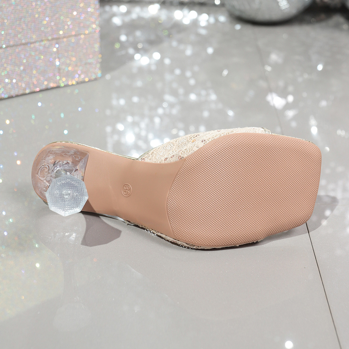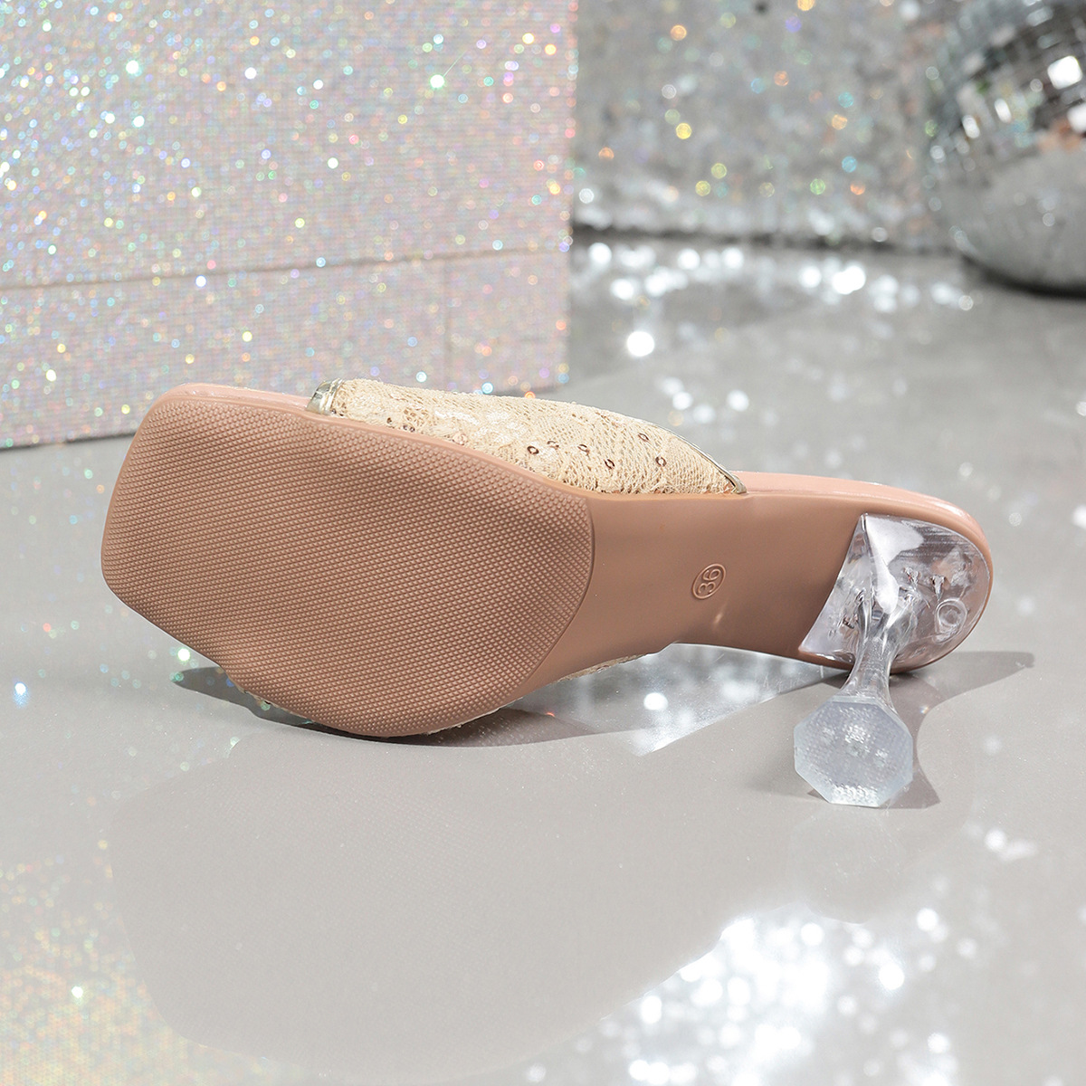 Женские босоножки на высоком каблуке-шпильке с сетчатым кружевом, пайетками и кристаллами, летняя новинка 2025 года, большой размер, для трансграничной торговли