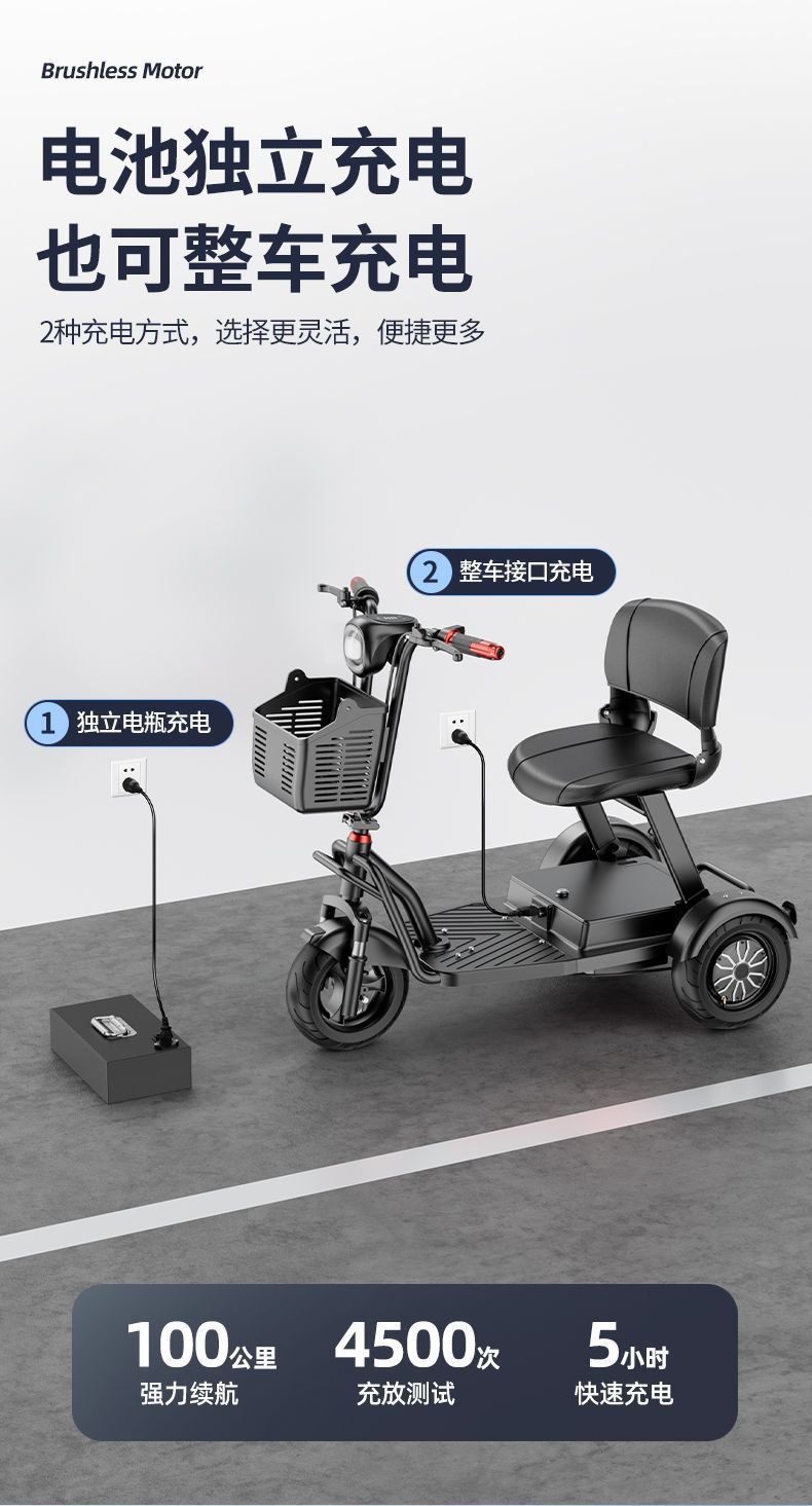 Электрический трехколесный велосипед для пожилых людей, бытовая малая мобильность, покупки, подвоз детей, пожилых людей, легкий складной электромобиль для родителей и детей.