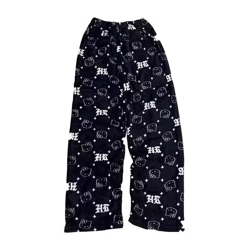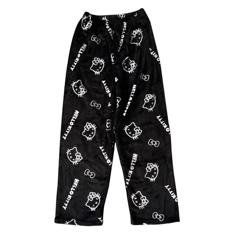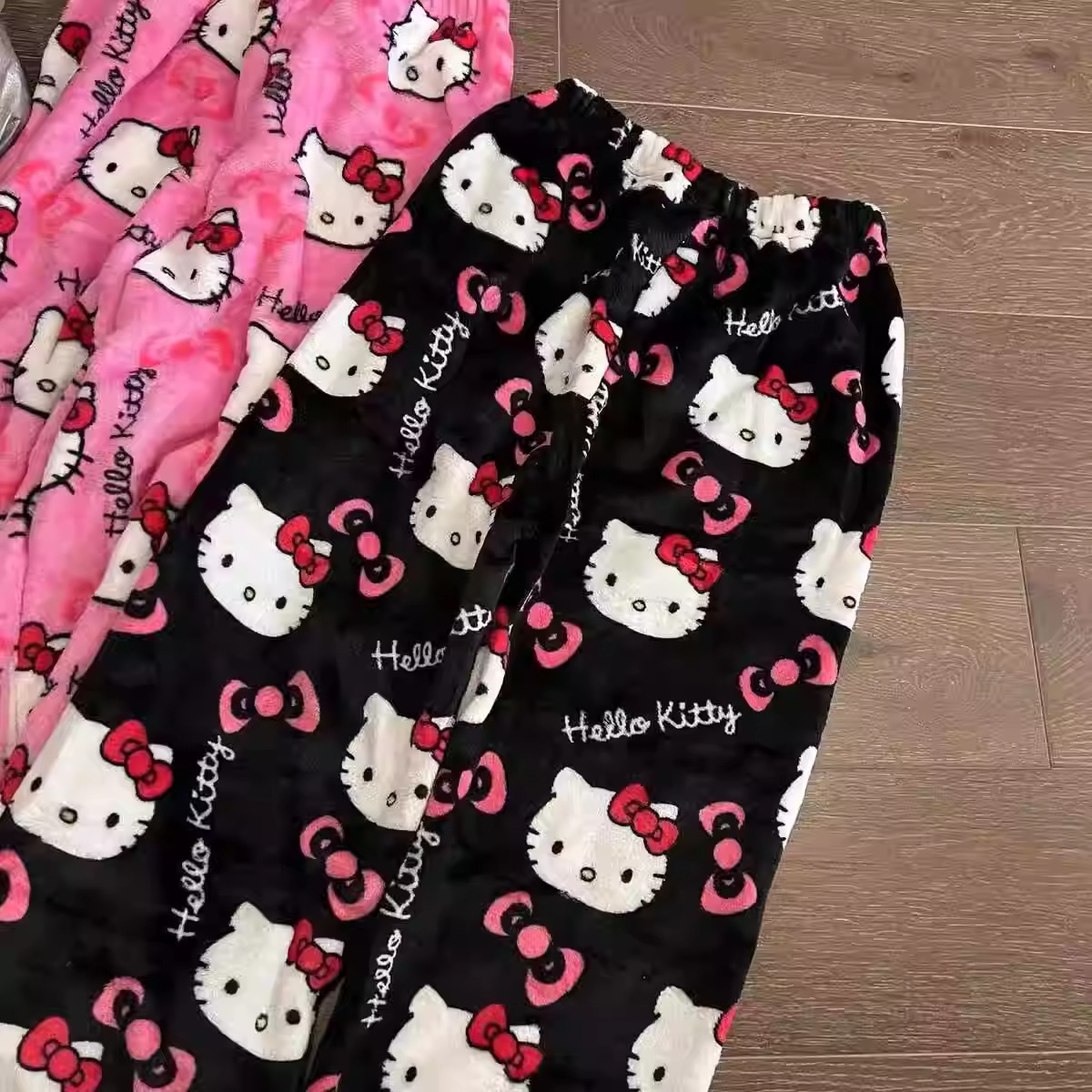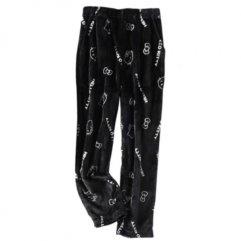 Толстые женские осенне-зимние флисовые повседневные домашние фланелевые брюки с рисунком «Hello Kitty» на Хэллоуин