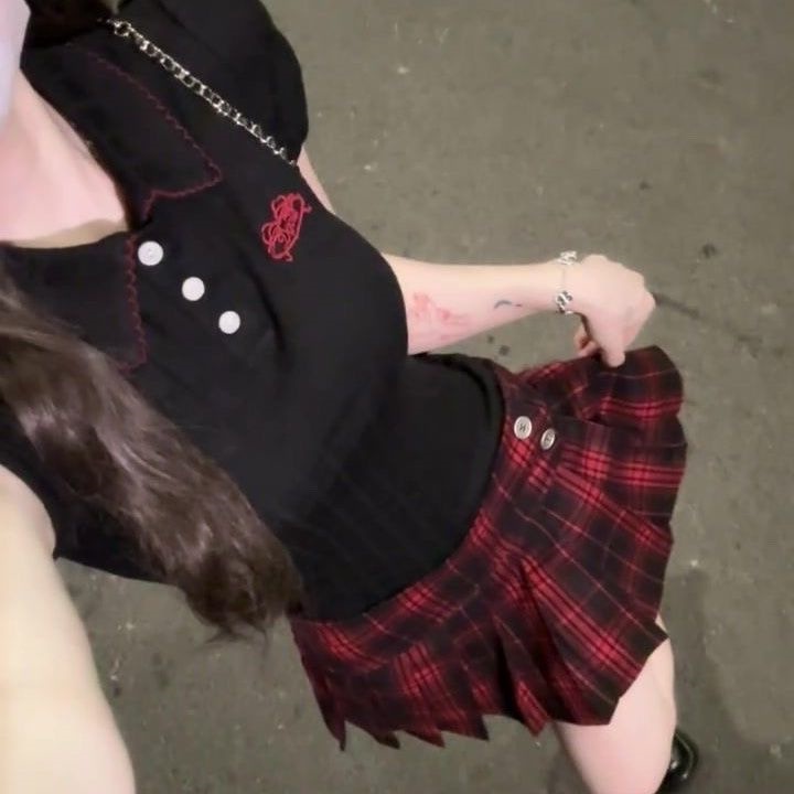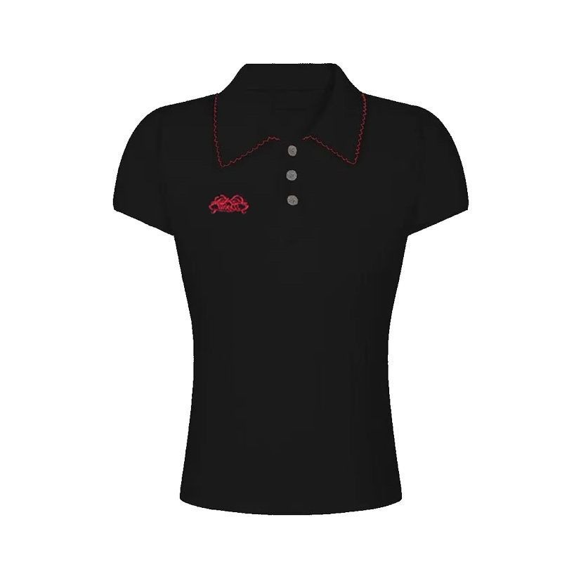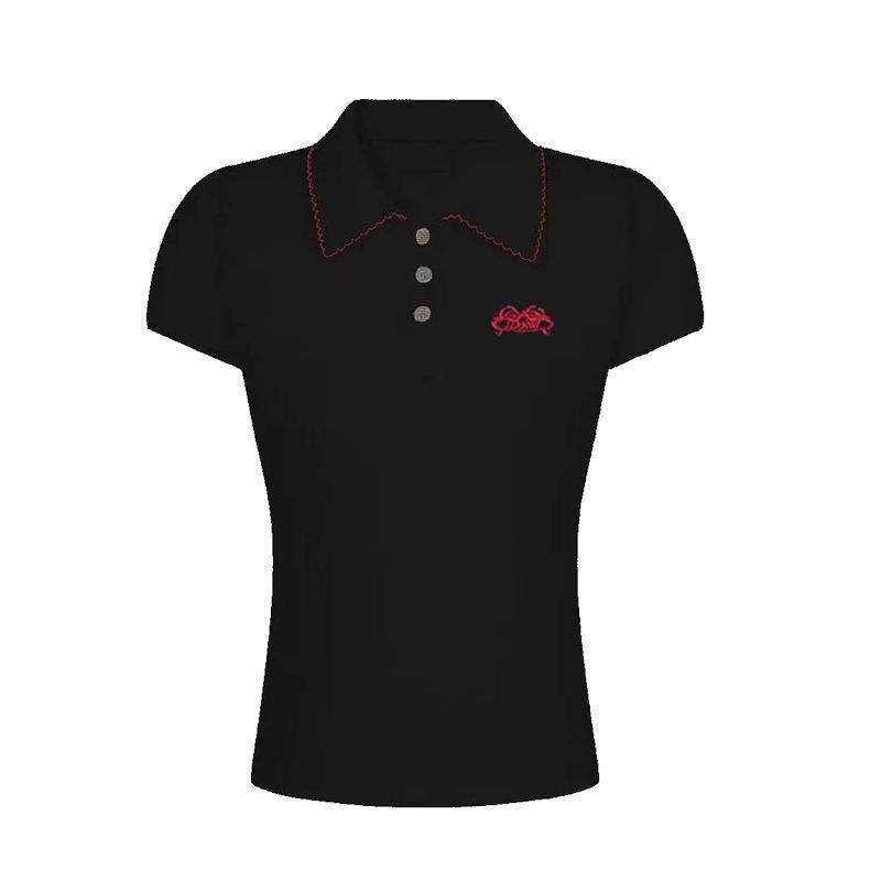 Плиссированная юбка с вышивкой, женский летний костюм, американский топ с короткими рукавами, тонкая футболка для горячих девушек, рубашка-поло в консервативном стиле, сезон