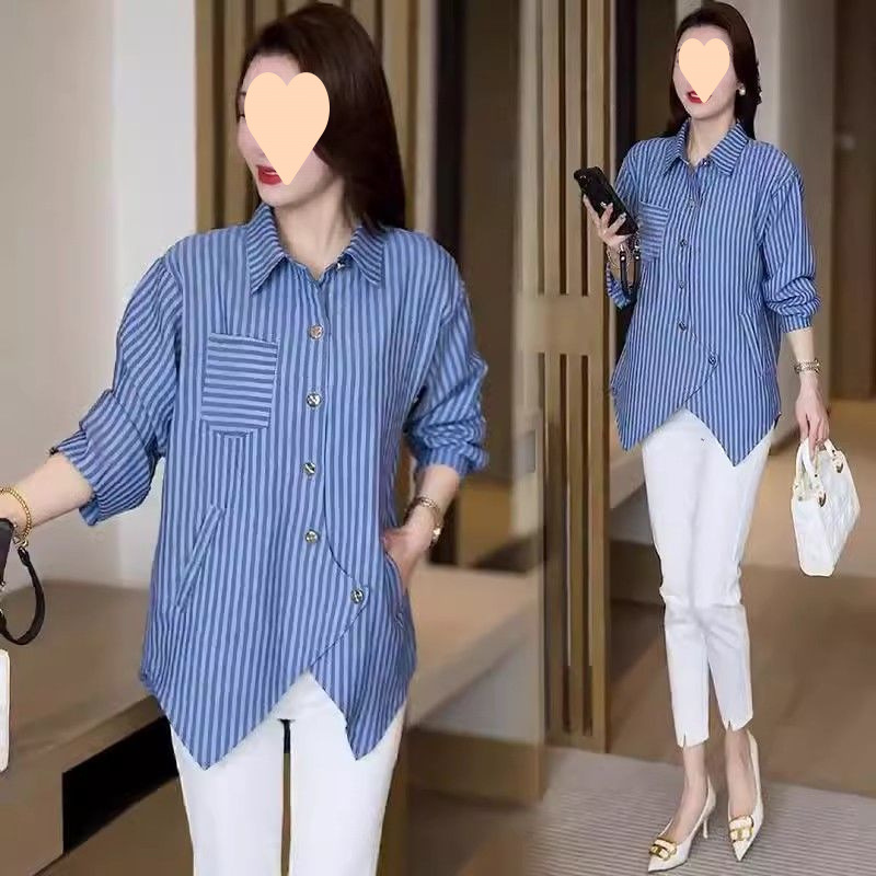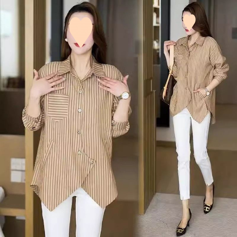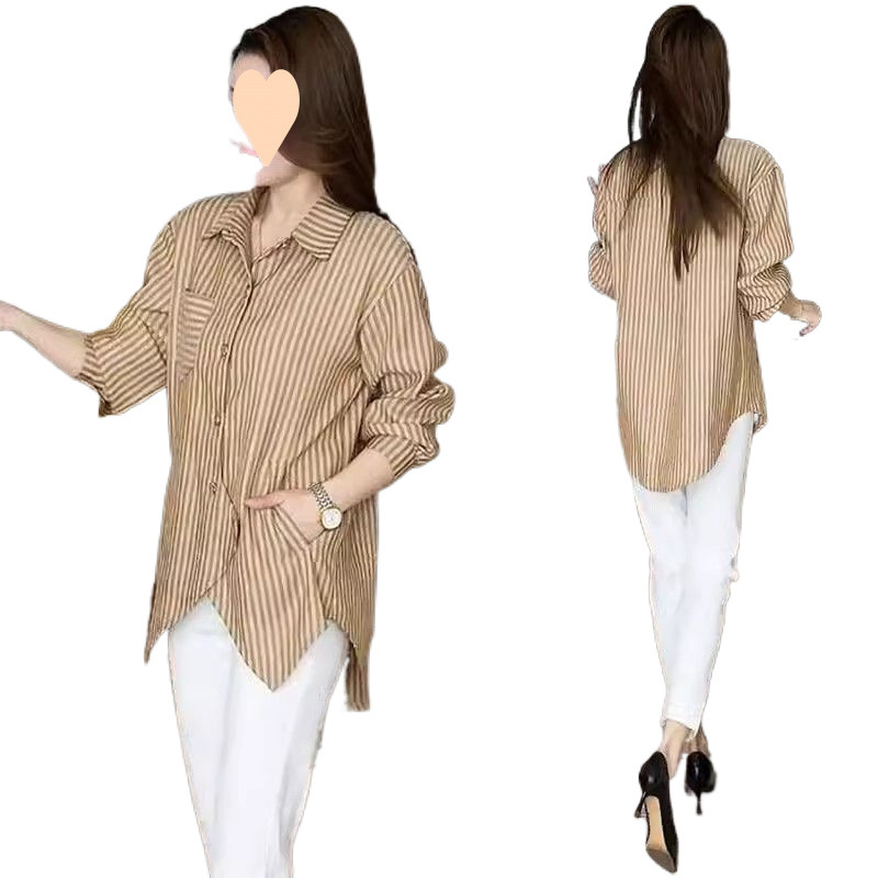 Модная асимметричная рубашка с длинным рукавом в полоску для женщин, весна-осень 2025, новая свободная, стройнящая, средней длины