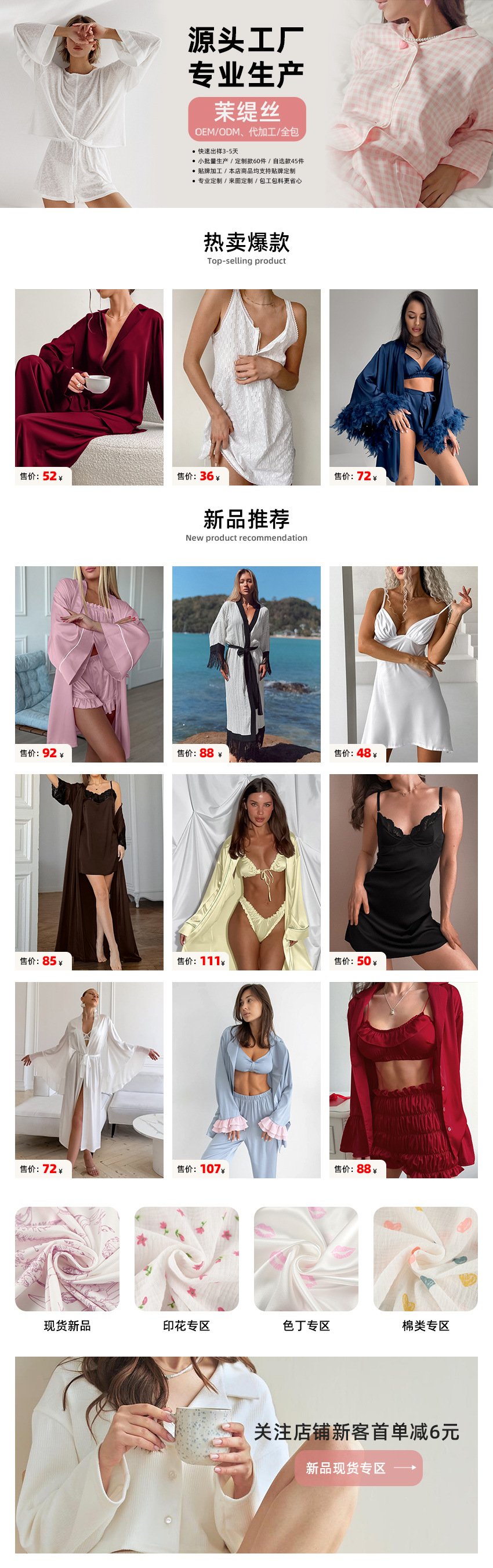 Европейская и американская трансграничная женская домашняя одежда, изготовление узоров, изготовление небольших партий, трудовая и материальная очистка, обработка, оптовая продажа женских пижам.
