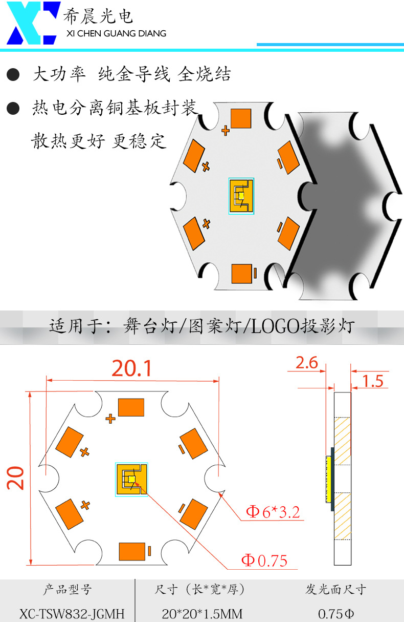 Размер светящейся поверхности: