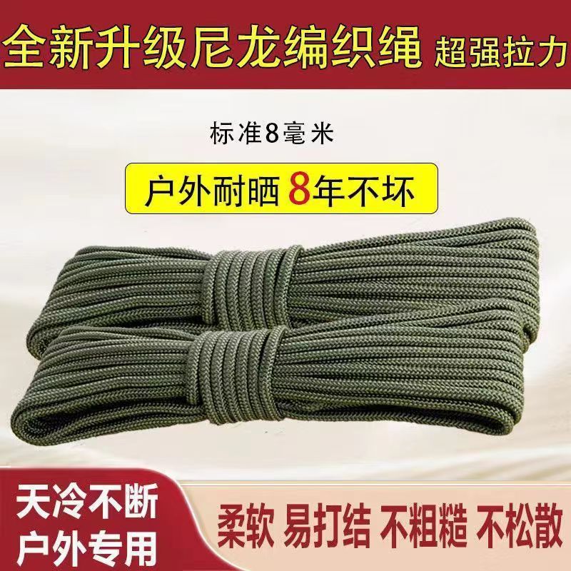 Военная зеленая веревка, прочная и износостойкая нейлоновая веревка, связывающая веревка, плетеная веревка, брезент, тормозная рекламная веревка, веревка для белья