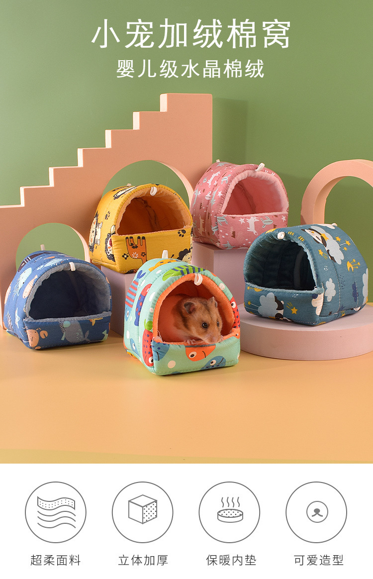 Гнездо для хомяка круглый год, хлопковое гнездо для домашних животных, птичье гнездо, утолщенное зимнее гнездо на флисовой подкладке, для маленьких домашних животных, попугаев, принадлежности для хомяков, кроличье гнездо, золотой медведь
