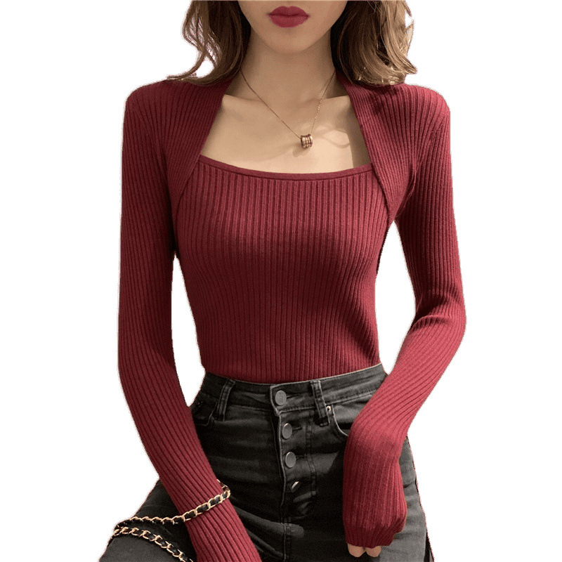 Вязаный свитер для женщин, тонкий новый воротник, тонкий свитер, нижняя рубашка, темперамент, две вещи для весенних и осенних каникул.