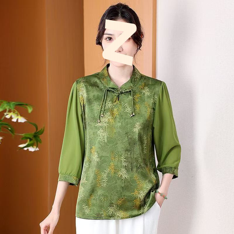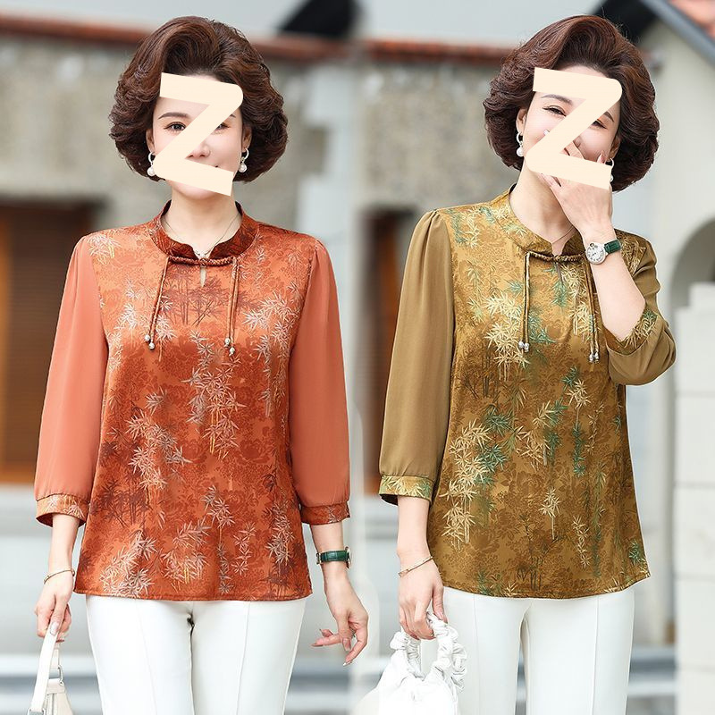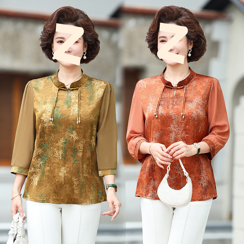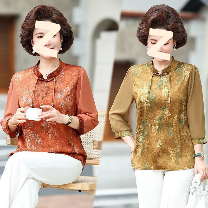 2025 новые модные свободные рубашки с рукавами три четверти для мам среднего и пожилого возраста, новые топы в китайском стиле в стиле ретро