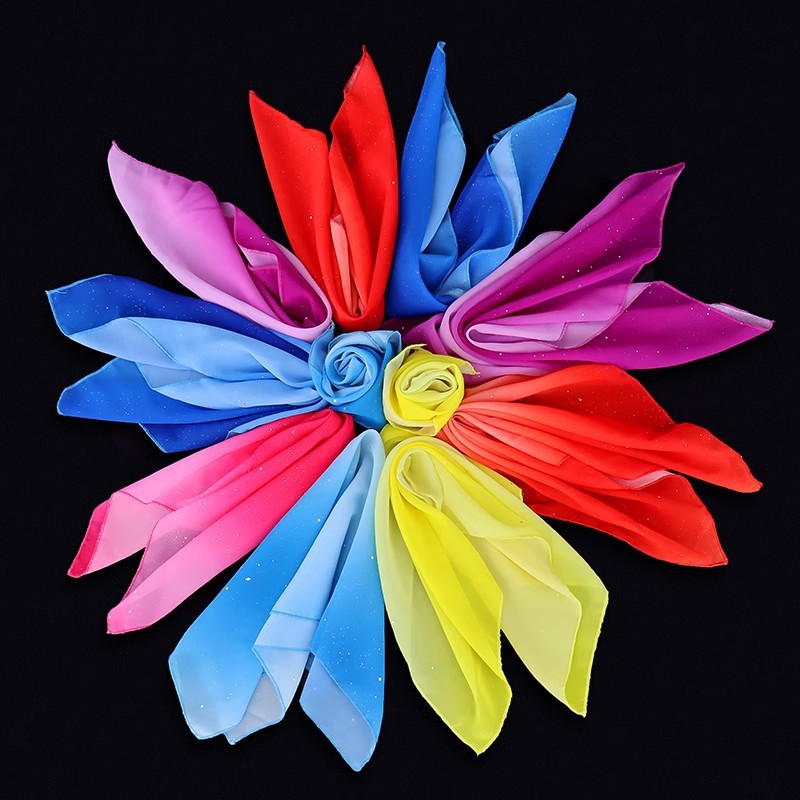 Танцевальный шелковый шарф, марлевый шарф, маленький квадратный шарф, носовой платок, цветочный экзамен, реквизит для пения на чайной горе, танцевальный носовой платок, шелковый шарф Jiaozhou Yangko