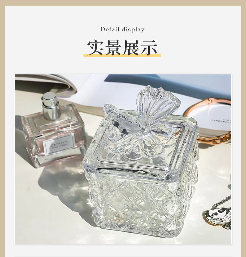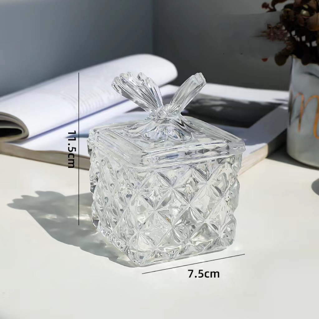 Прозрачная банка для конфет в форме бабочки, французская рельефная стеклянная банка для хранения с крышкой, вмещающая ароматерапевтические кристаллы.