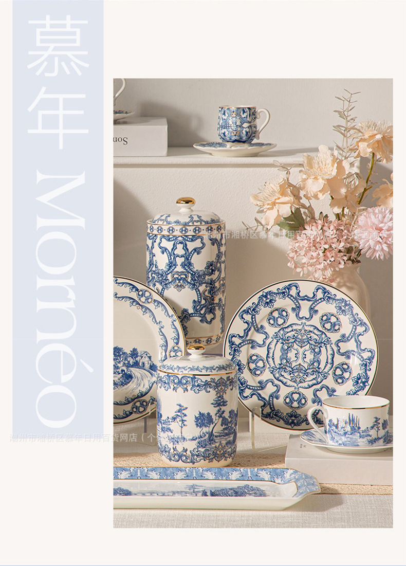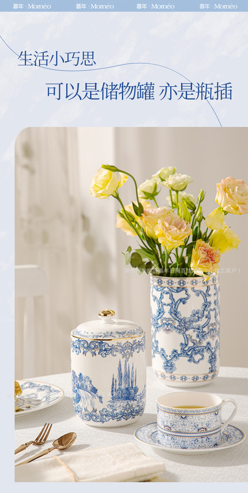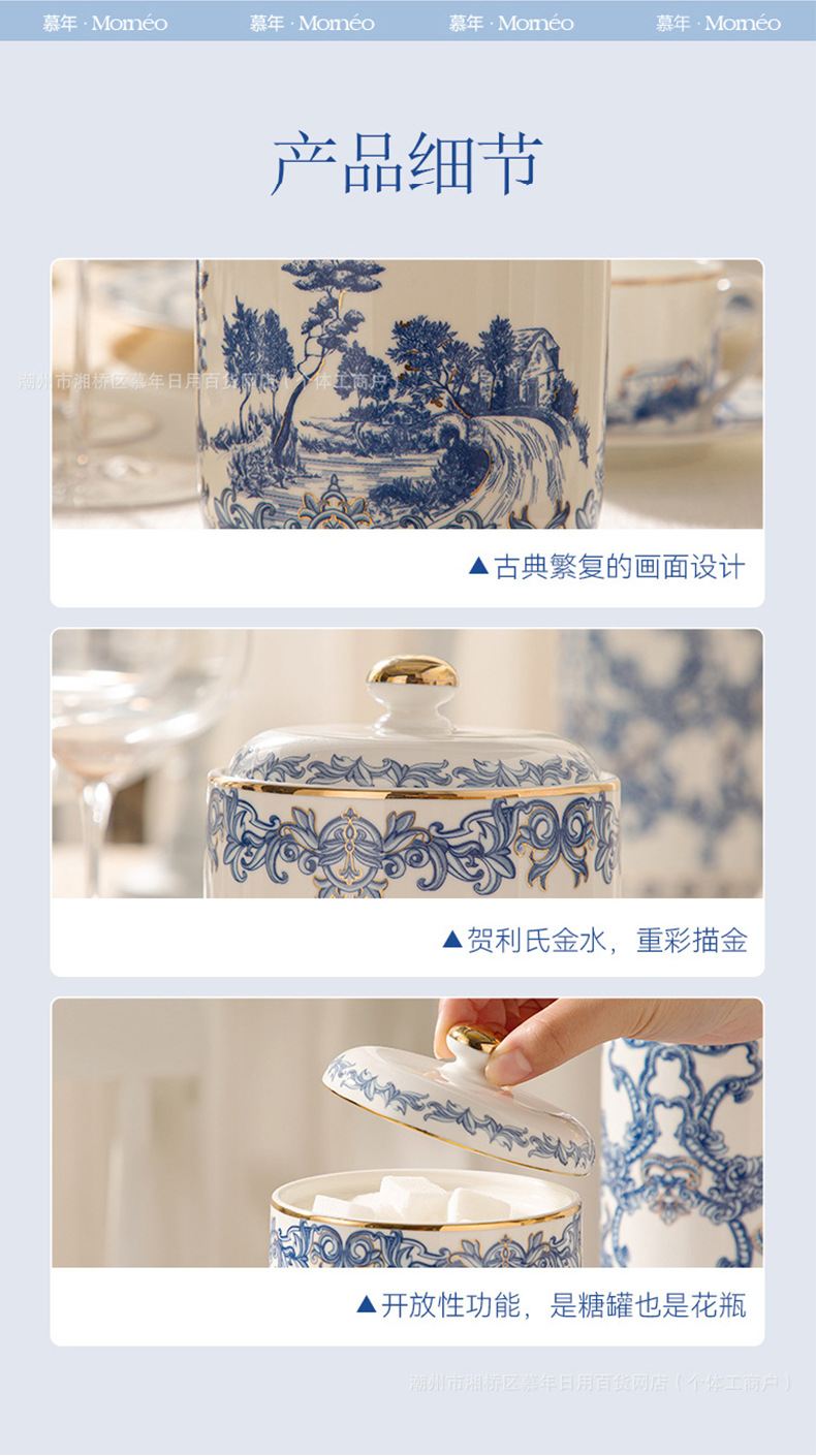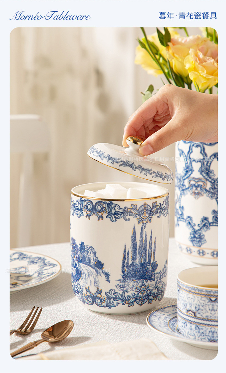 Турецкая кофейная сахарница в сине-белом цвете, маленькая банка для хранения, европейская банка с золотым покрытием и крышкой для роскошных отелей и ресторанов.