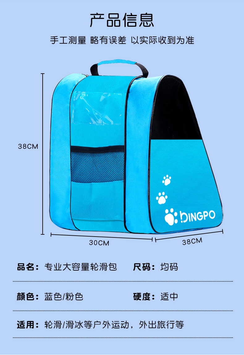 0012 синяя сумка для катания на роликовых коньках с половиной сетки; 0012 розовая сумка для катания на роликовых коньках с полусеткой; 0013 Синяя сумка для катания на роликовых коньках с полусеткой [область имени + карман для чашки с водой]; 0013 Розовая сумка для катания на роликовых коньках с полусеткой [область имени + карман для чашки с водой]; Синяя сетчатая сумка + носки для роликовых коньков.; Розовая сетчатая сумка + носки для роликовых коньков.