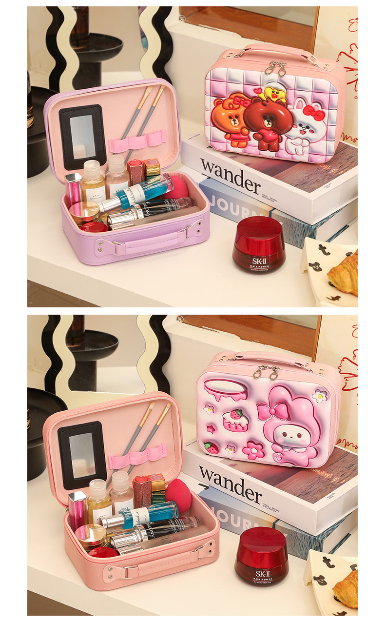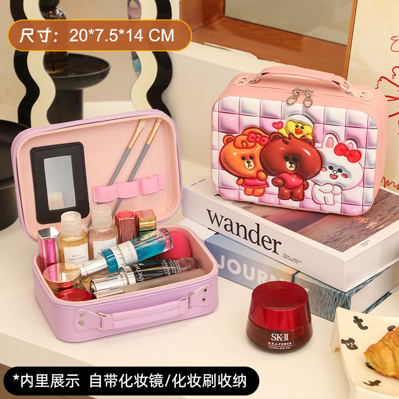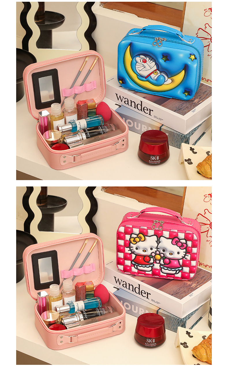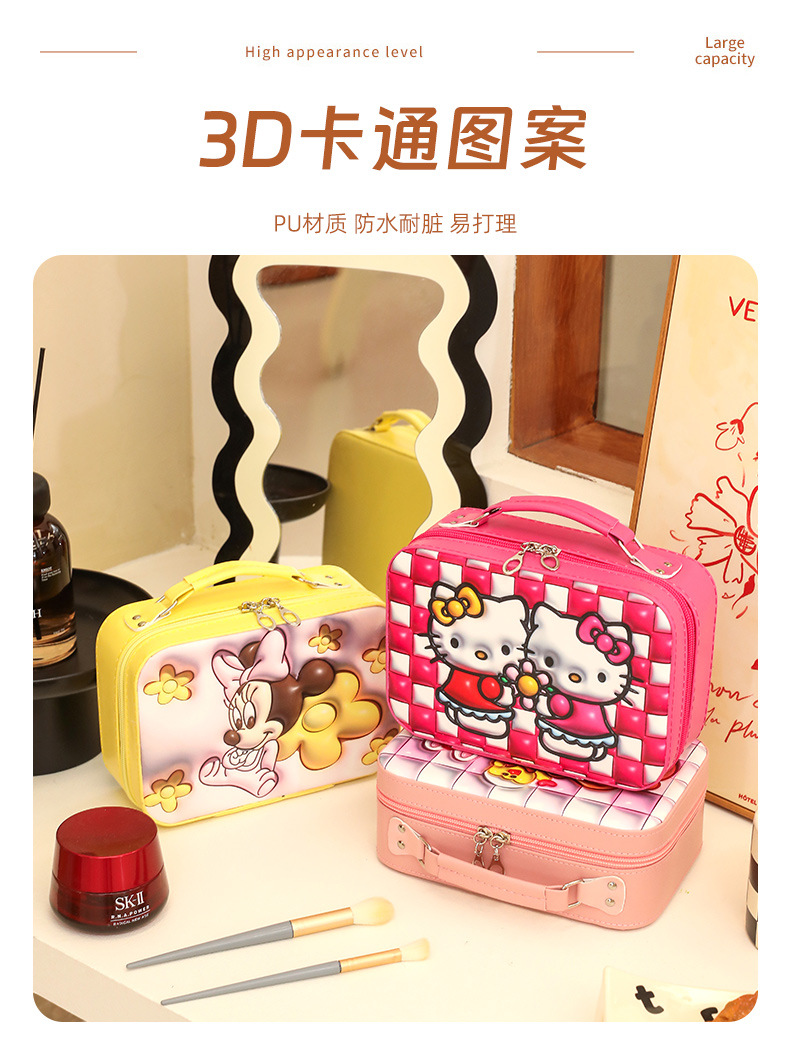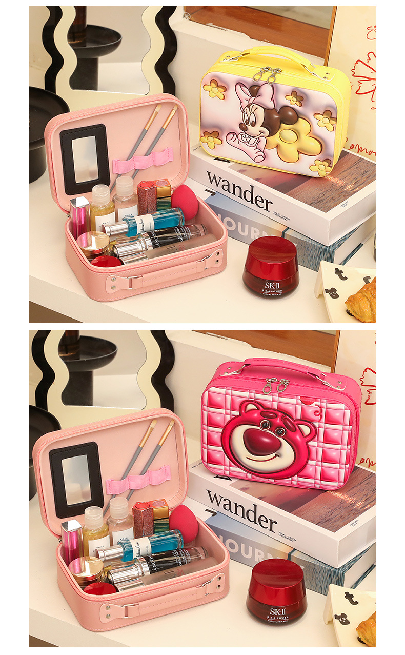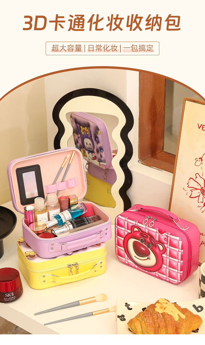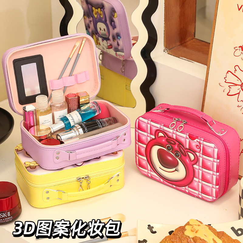 Портативная косметичка с мультяшным дизайном 2025 года, новая многофункциональная 3D-косметичка с объемным эффектом, вместительная сумка для хранения, водонепроницаемая, для путешествий.