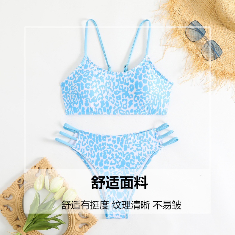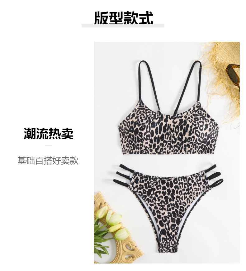 Женский раздельный купальник с леопардовым принтом в европейском и американском стиле, 2025 год, бикини с открытой спиной, купальник для горячих источников, спортивный стиль Amazon, раздельный купальник из двух частей
