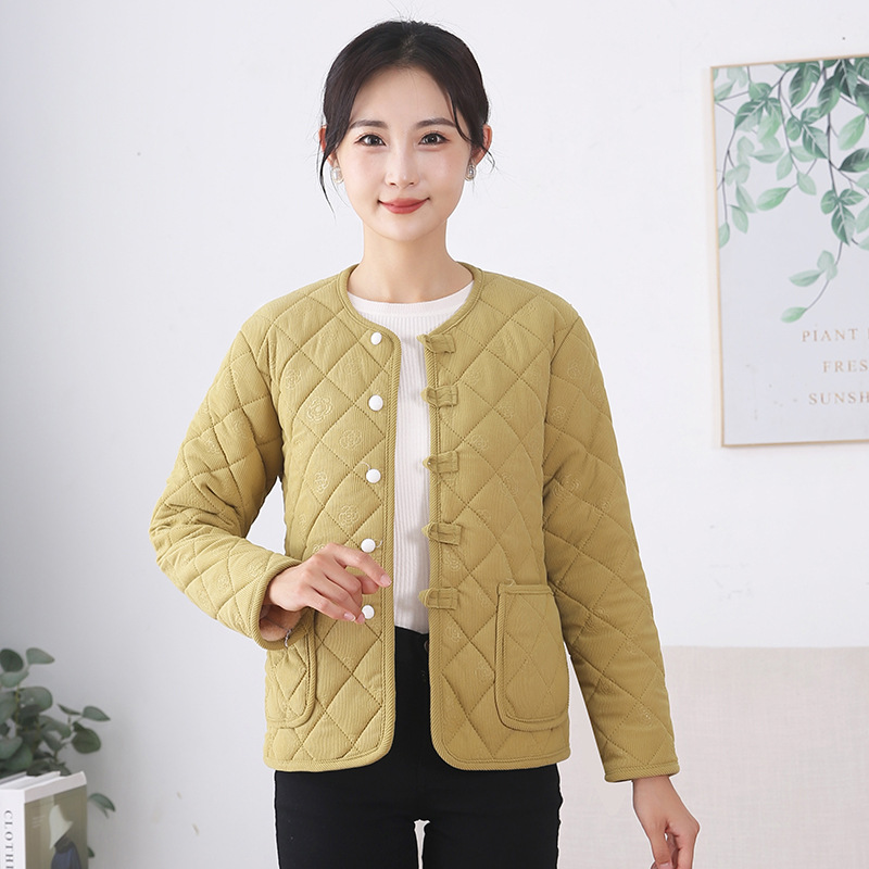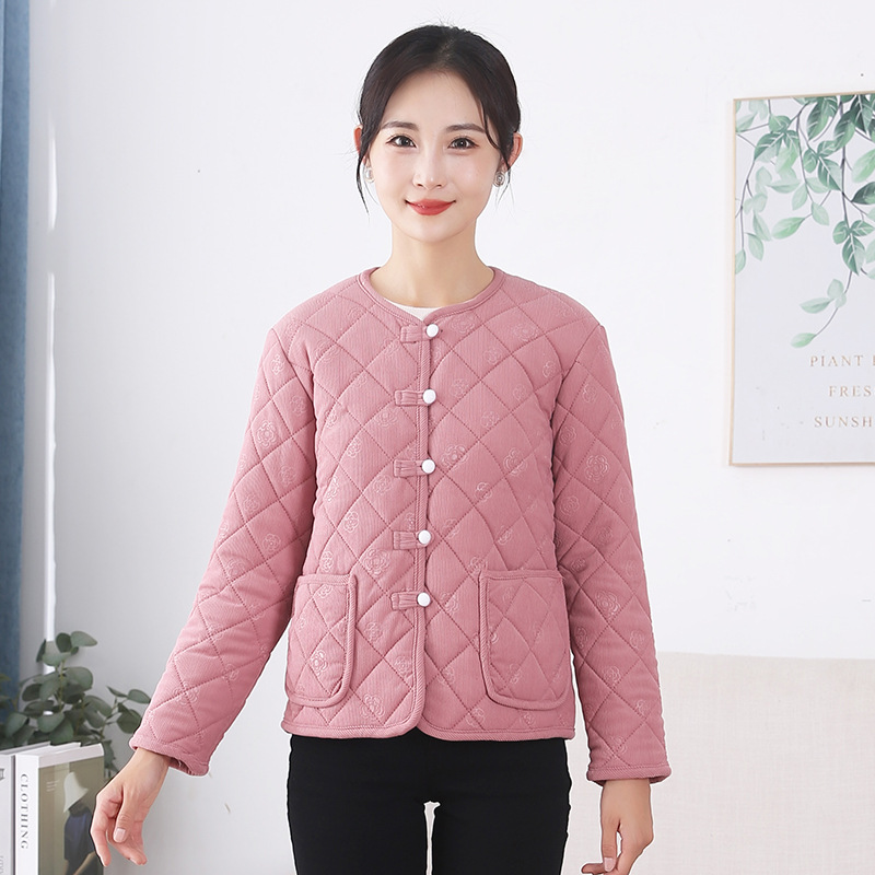 Осенне-зимняя вельветовая хлопковая куртка для женщин, утепленное вельветовое пальто, одежда больших размеров для женщин, одежда для мам, женская одежда с длинными рукавами и принтом.