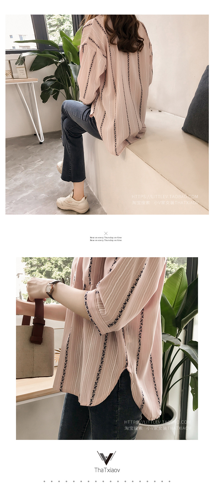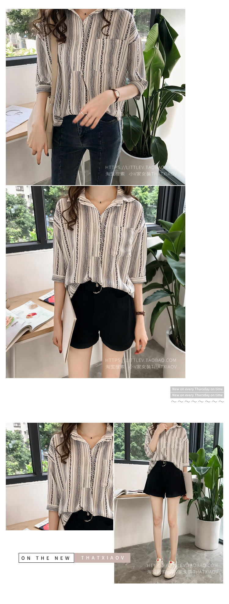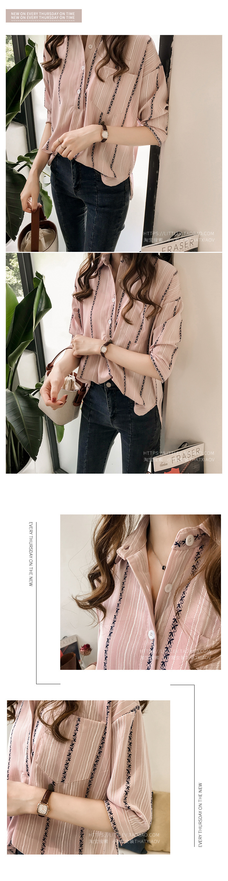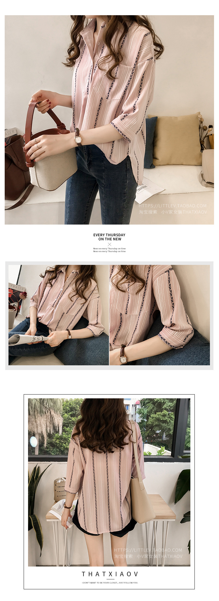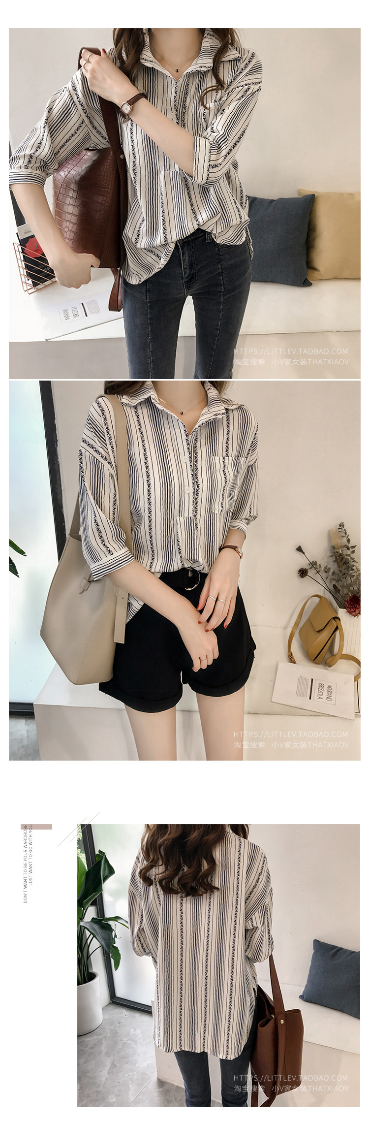 Ранняя осень, женская новая свободная рубашка в гонконгском стиле большого размера, полосатая рубашка, женская рубашка с рукавом три четверти, нижняя рубашка