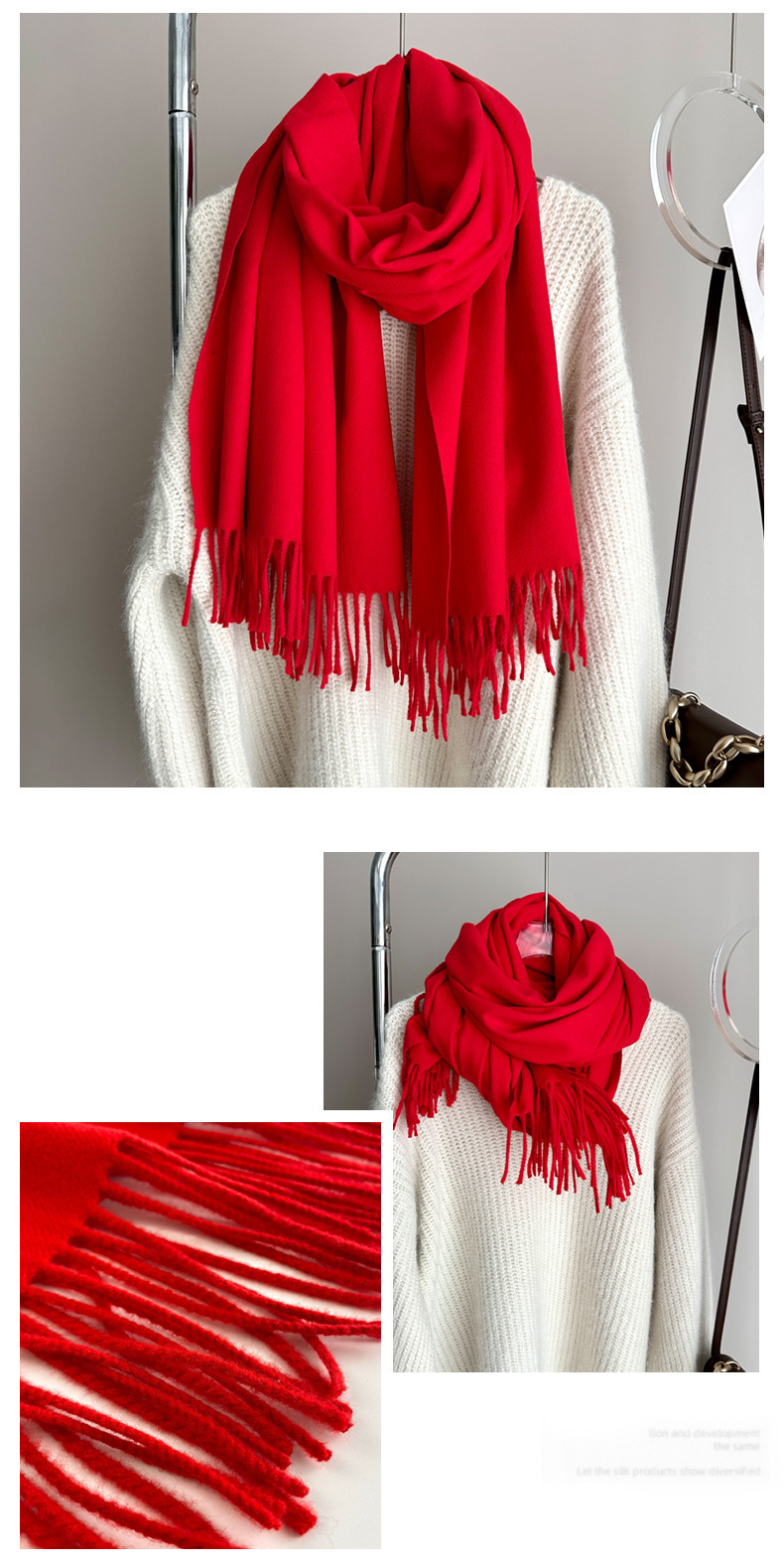 Осенне-зимний шарф из искусственного кашемира, однотонный мужской утолщенный шаль, теплый женский кашемировый шарф с кисточками, оптовая продажа, красный