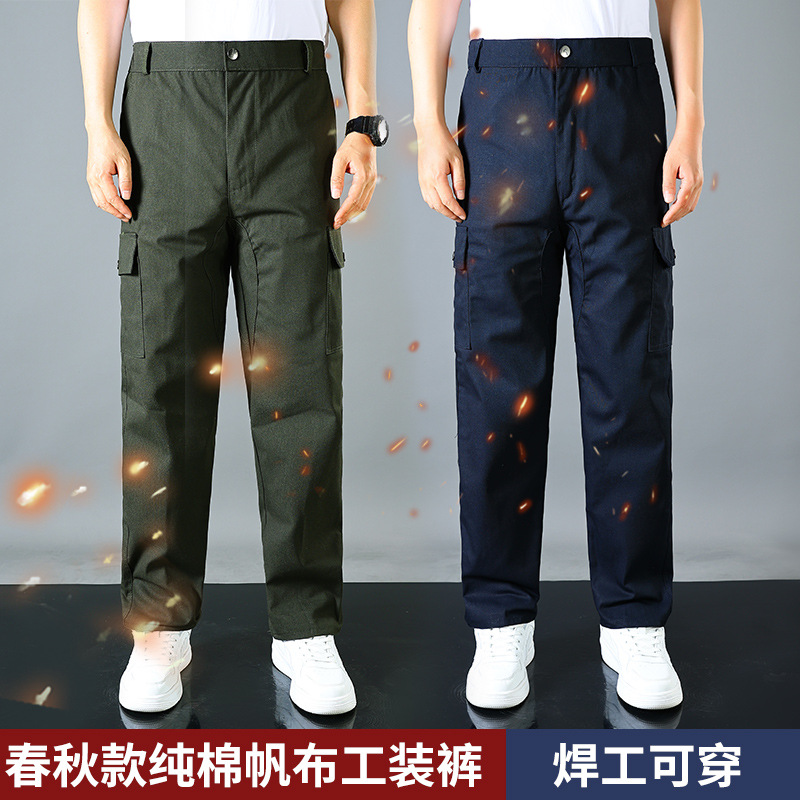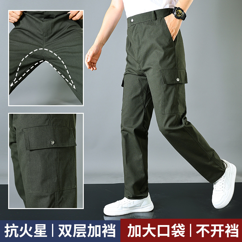 Рабочие брюки, сварочные брюки для охраны труда с дополнительным шаговым швом, брюки-карго, мужские холщовые прямые износостойкие длинные брюки, мужские повседневные брюки