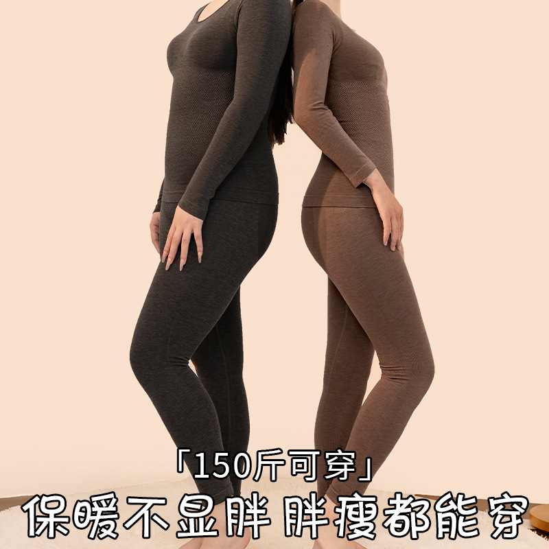 Красный шерстяной термокомплект для женщин: осенняя одежда и брюки, теплогенерирующий, утолщенный, больших размеров, улучшающий внешний вид кожи, высокая эластичность.