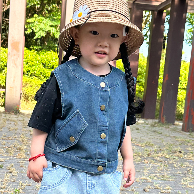 Джинсовый жилет для девочки весна-осень 2025, модный повседневный жилет для малышей, детская весенняя верхняя одежда