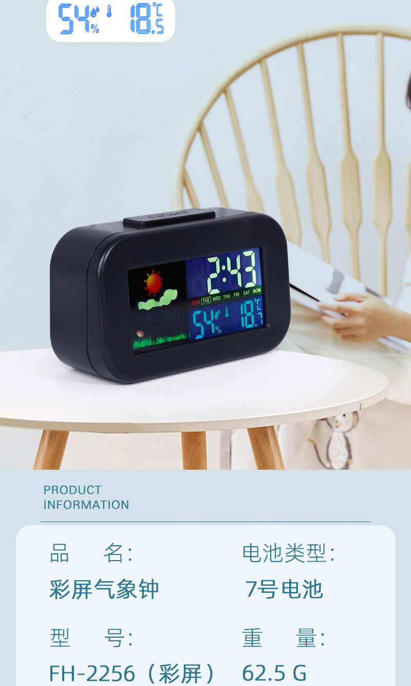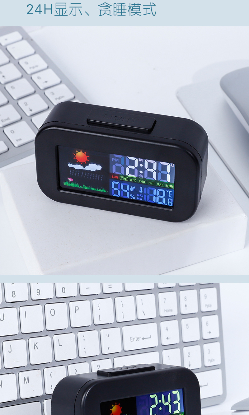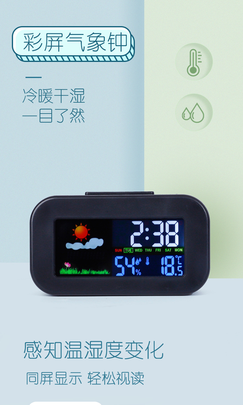 Трансграничный экспорт, цифровой цветной экран, погодные часы, температура и влажность, цифровой будильник на одном экране, светодиодный фонарь, многофункциональный будильник