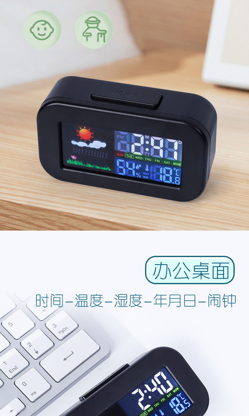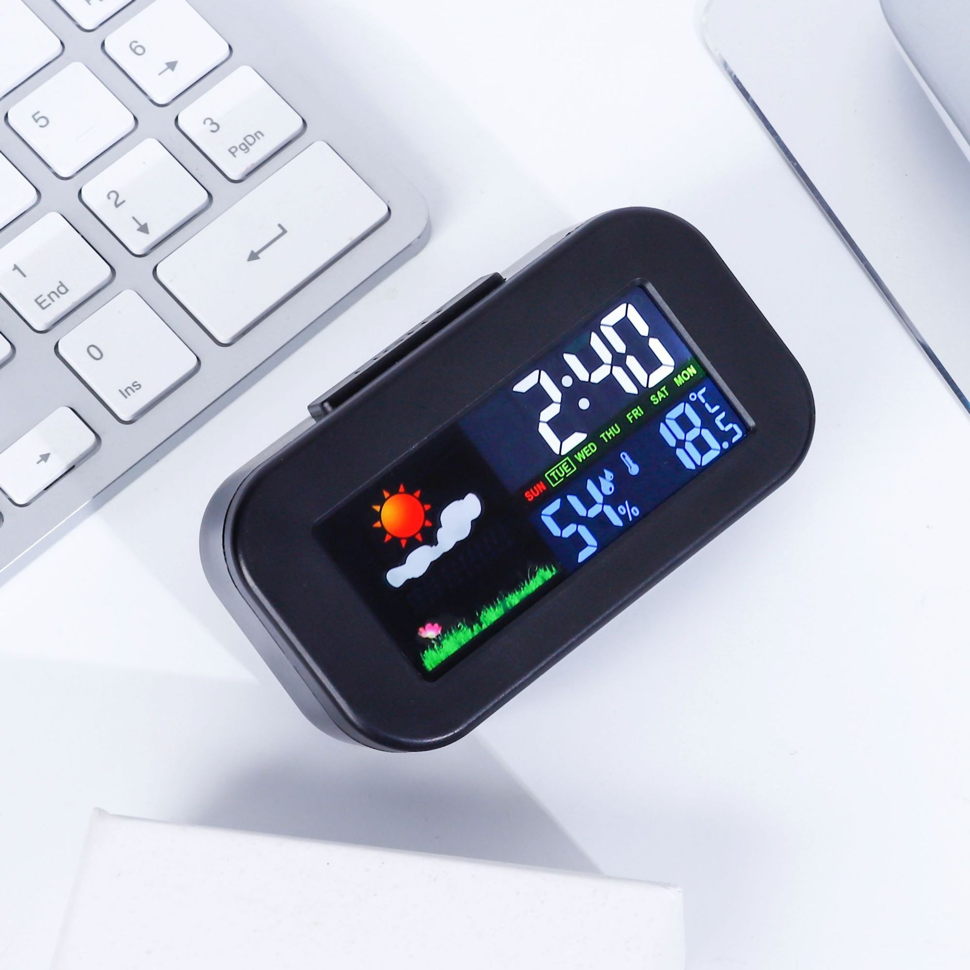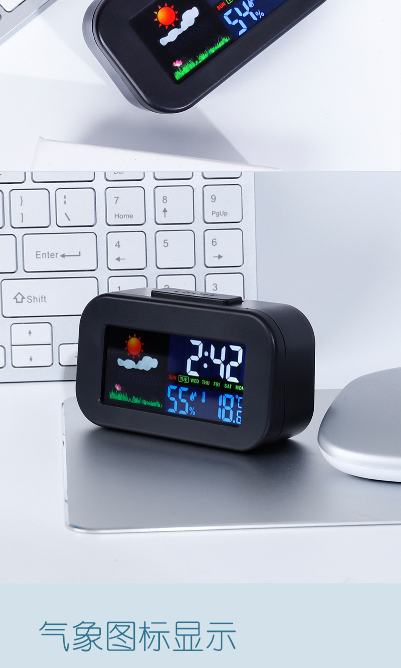 Трансграничный экспорт, цифровой цветной экран, погодные часы, температура и влажность, цифровой будильник на одном экране, светодиодный фонарь, многофункциональный будильник