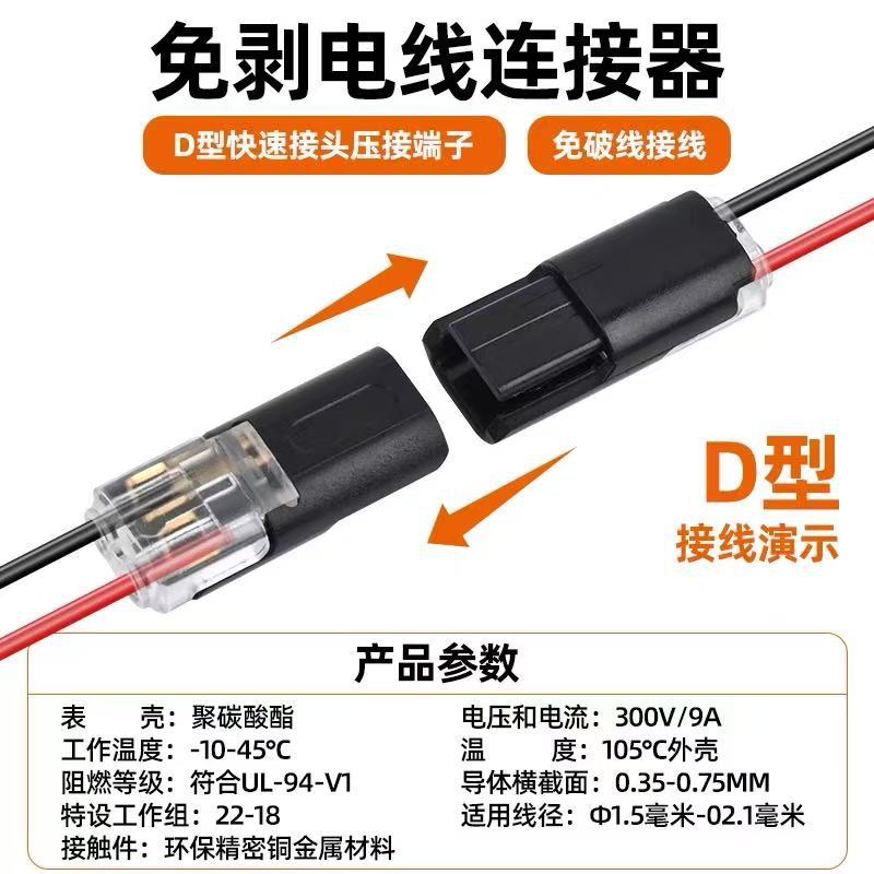 Быстрый клеммный блок D2, не требующий пайки, не подверженный отслаиванию, со вставным светодиодным разъемом и замком, док-станция для силового провода 2P