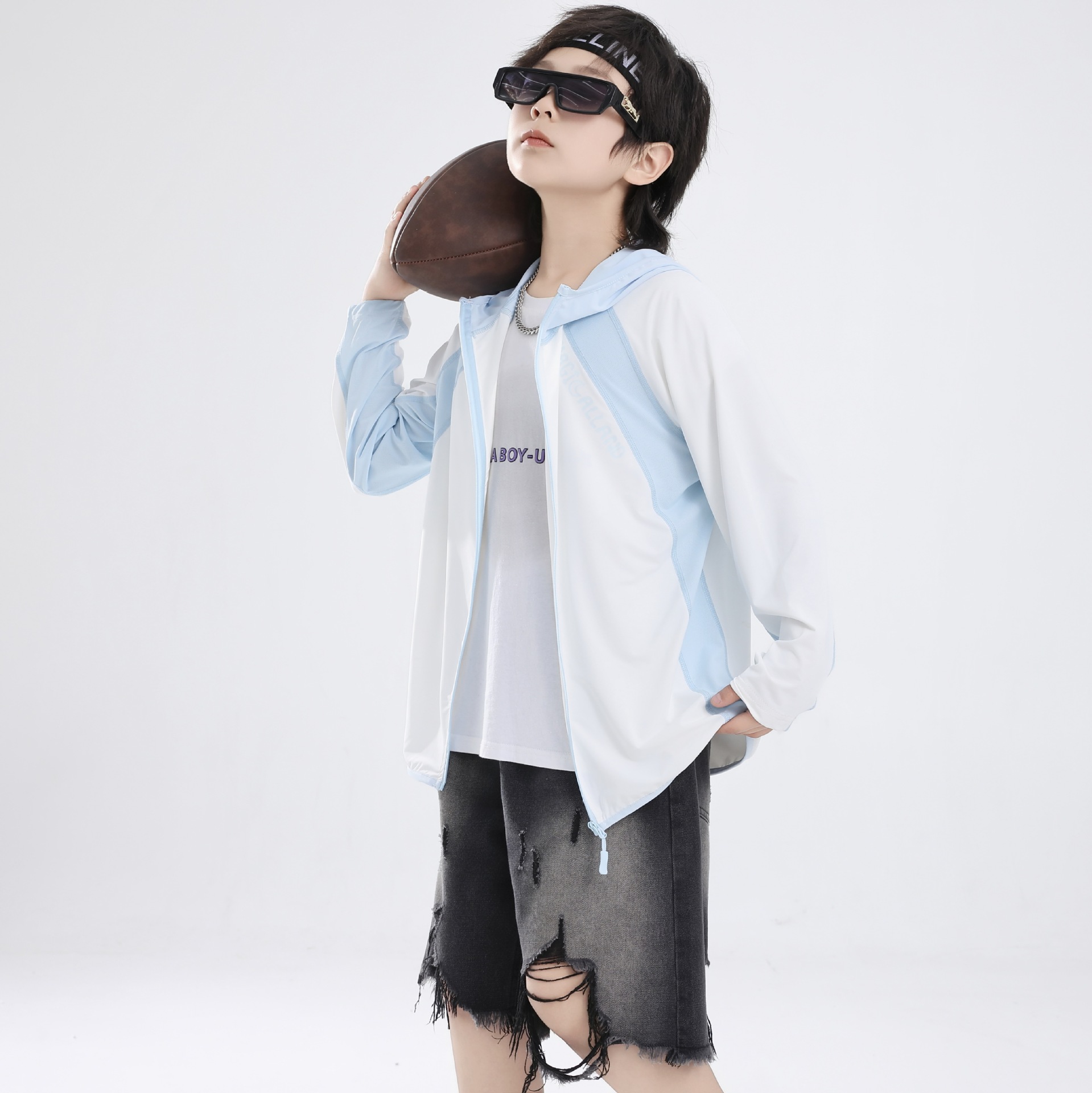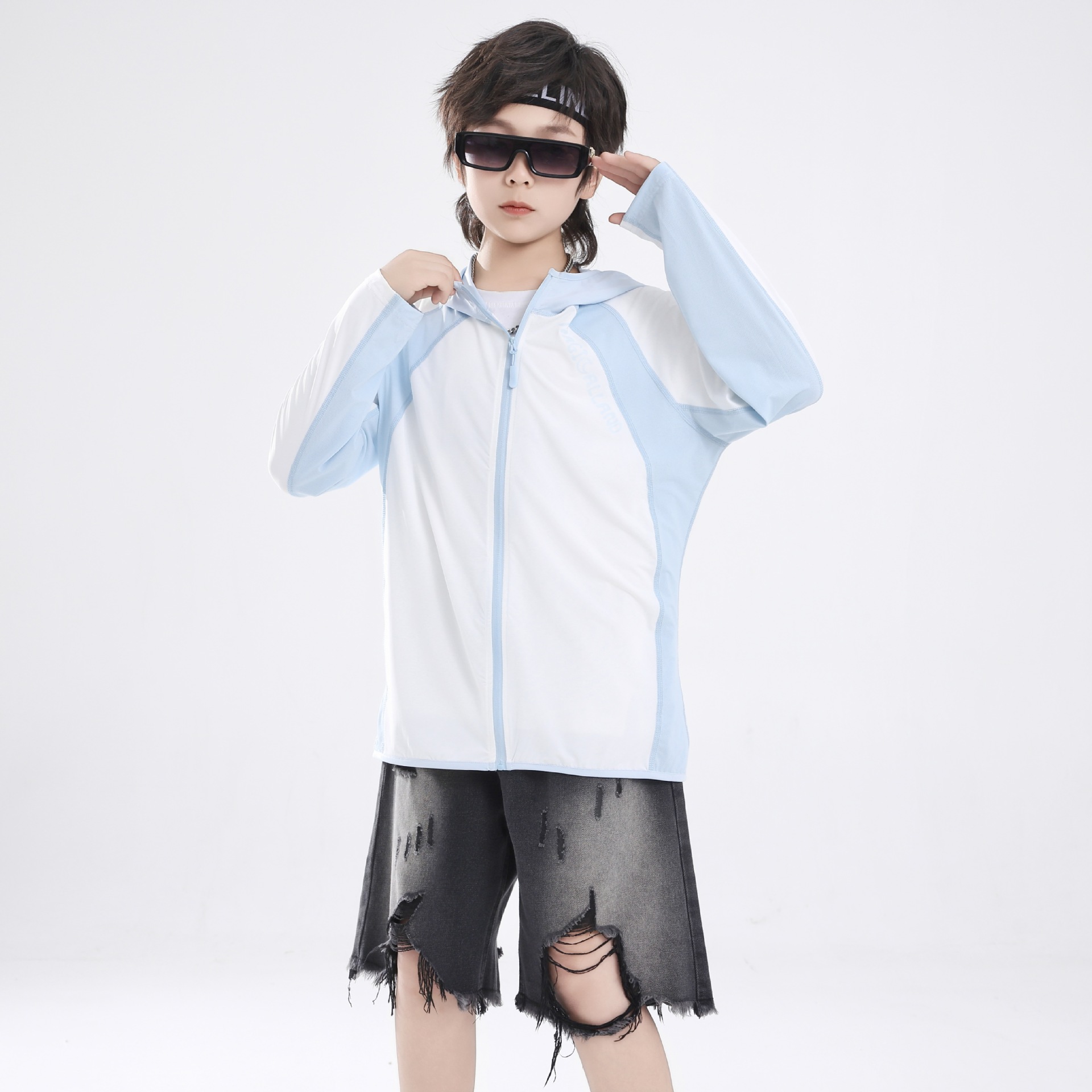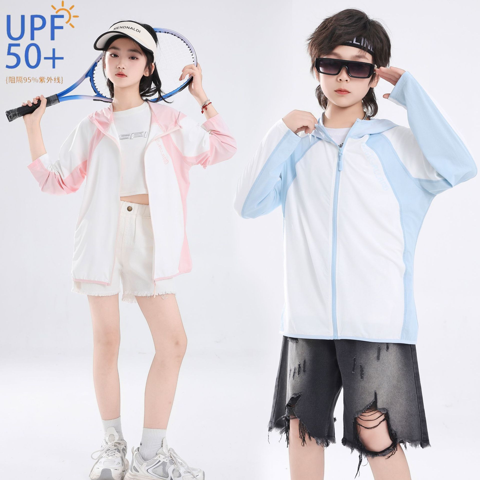 Детская солнцезащитная одежда, новый летний стиль для мужчин и женщин, средняя и большая детская одежда для защиты от солнца и солнечных ожогов, уличная защита от ультрафиолета UPF50 +