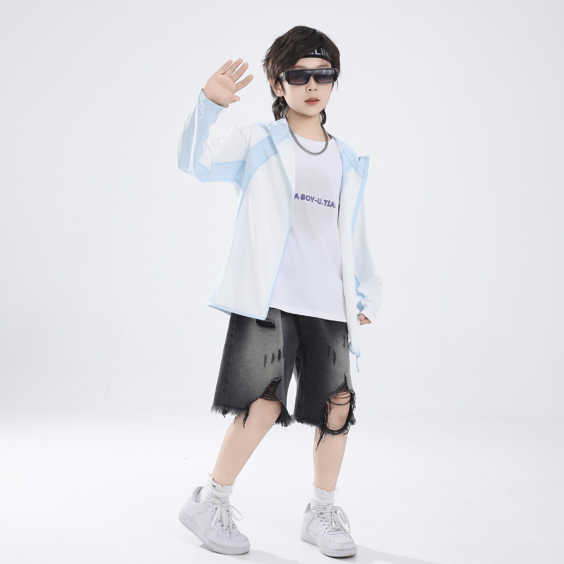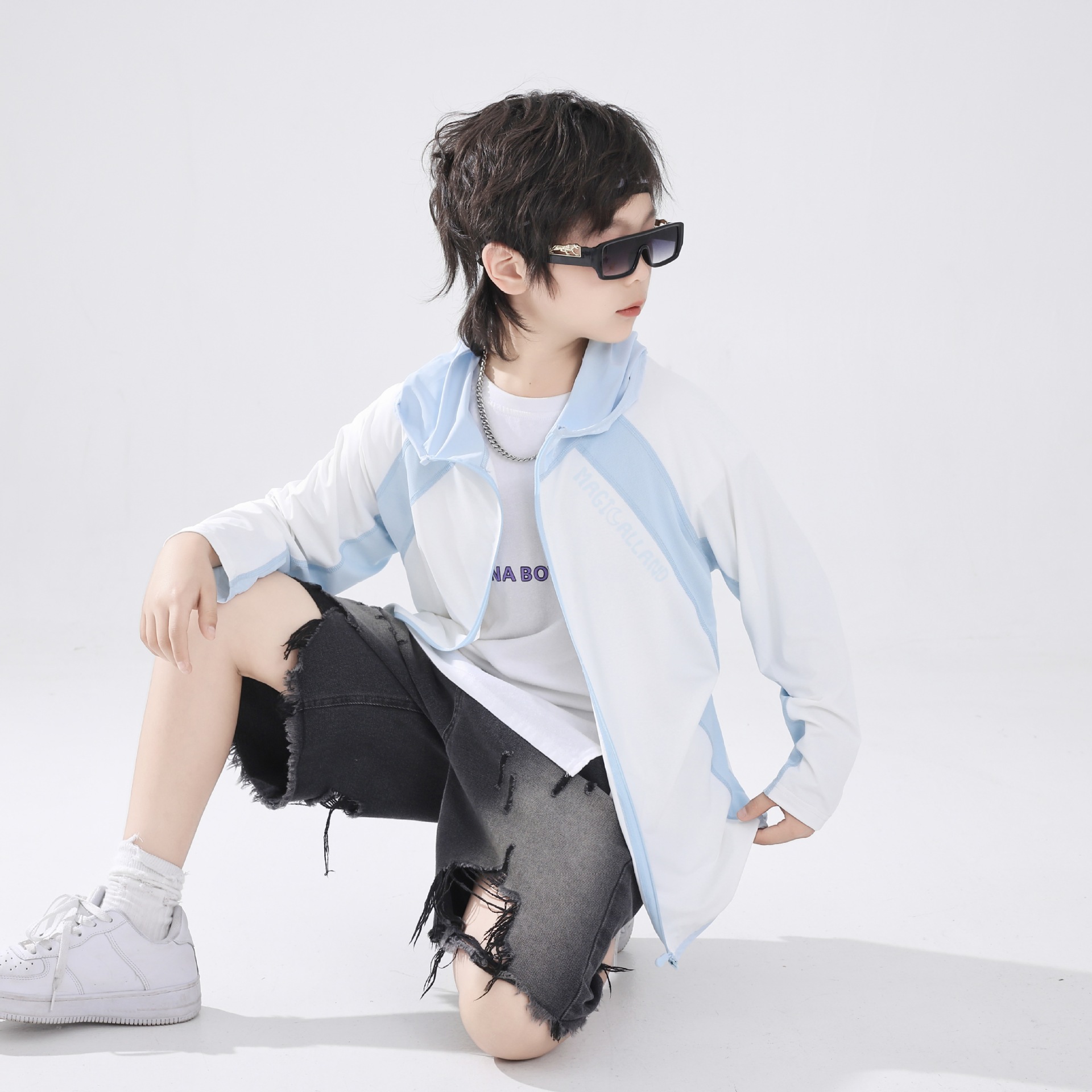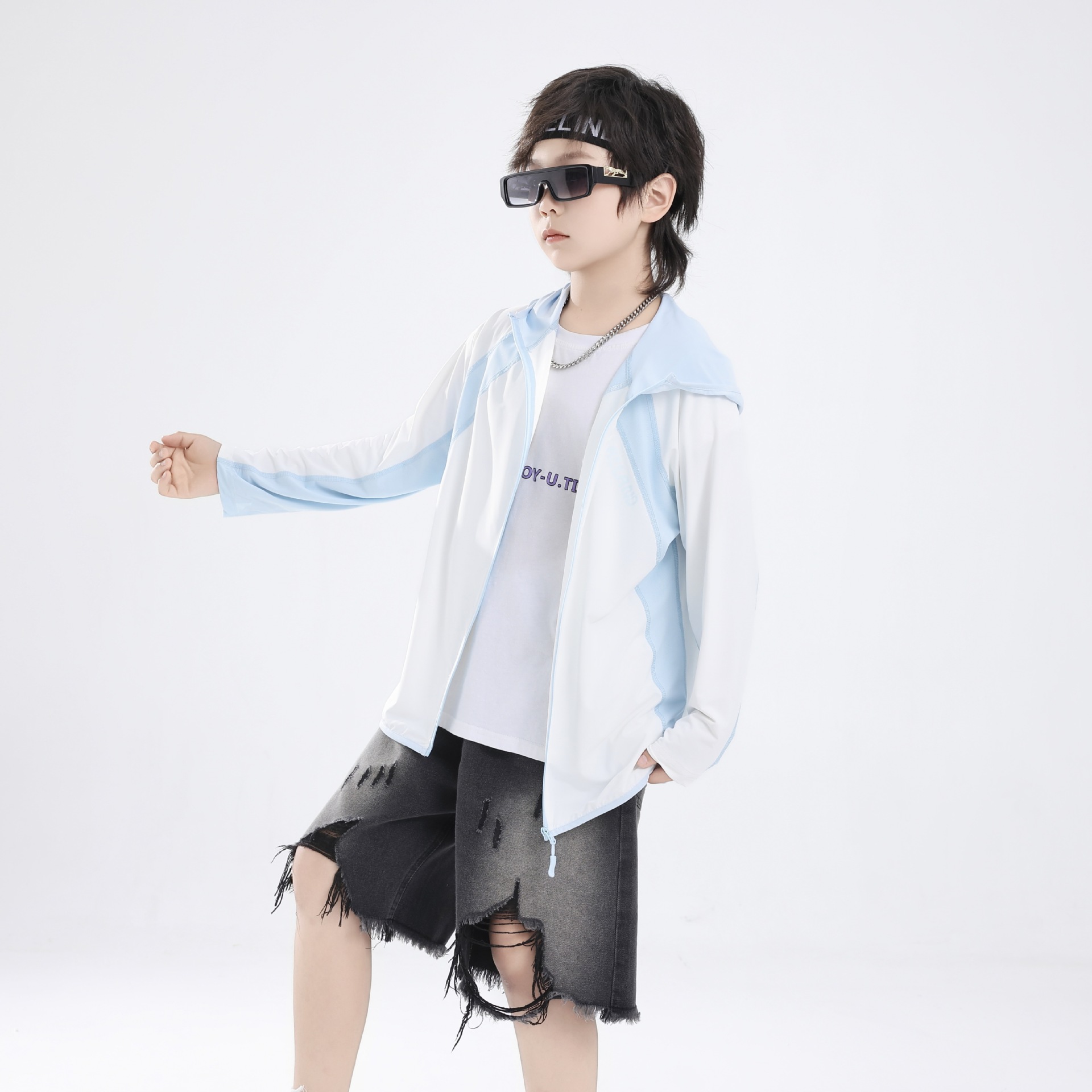 Детская солнцезащитная одежда, новый летний стиль для мужчин и женщин, средняя и большая детская одежда для защиты от солнца и солнечных ожогов, уличная защита от ультрафиолета UPF50 +