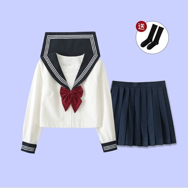 Бело-черная юбка из трех частей JK, базовый аутентичный матросский костюм, средний наряд в японском студенческом стиле с короткими рукавами для женщин, лето