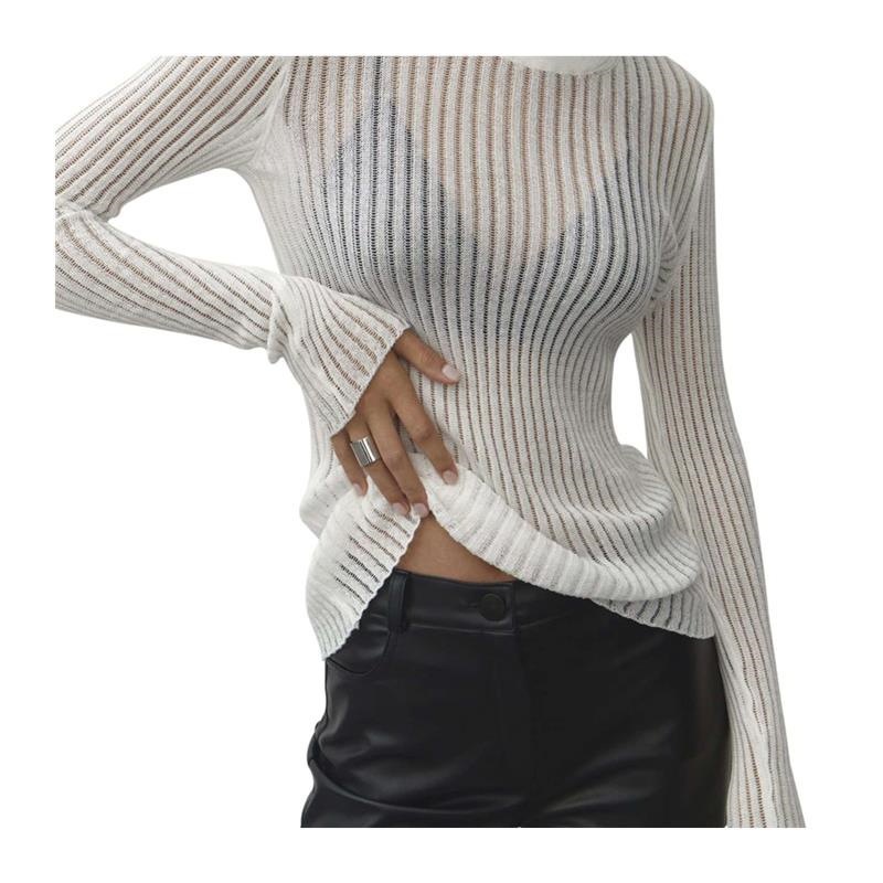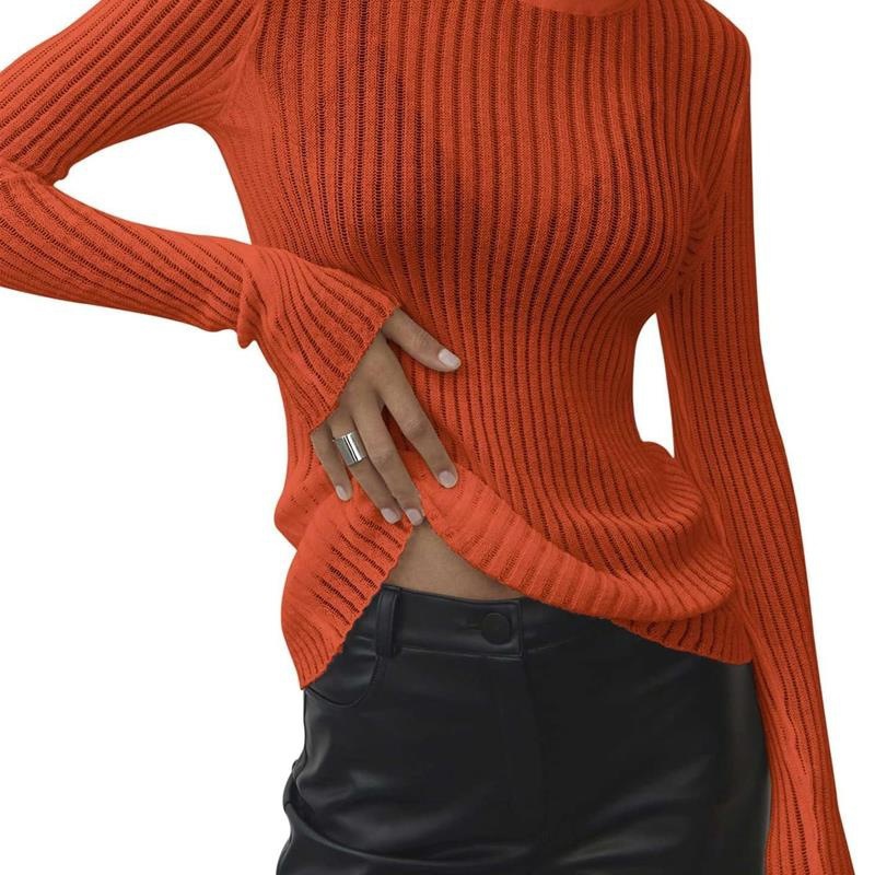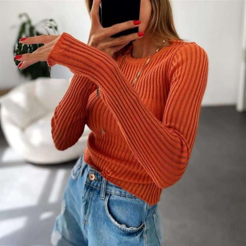 Топ с цветными рукавами и воротником, вязаный длинный женский однотонный топ с круглым вырезом