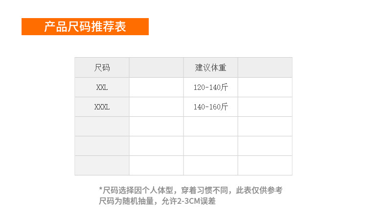 XXL (рекомендуется 60-70kg ); XXXL (рекомендуется 70-80kg )