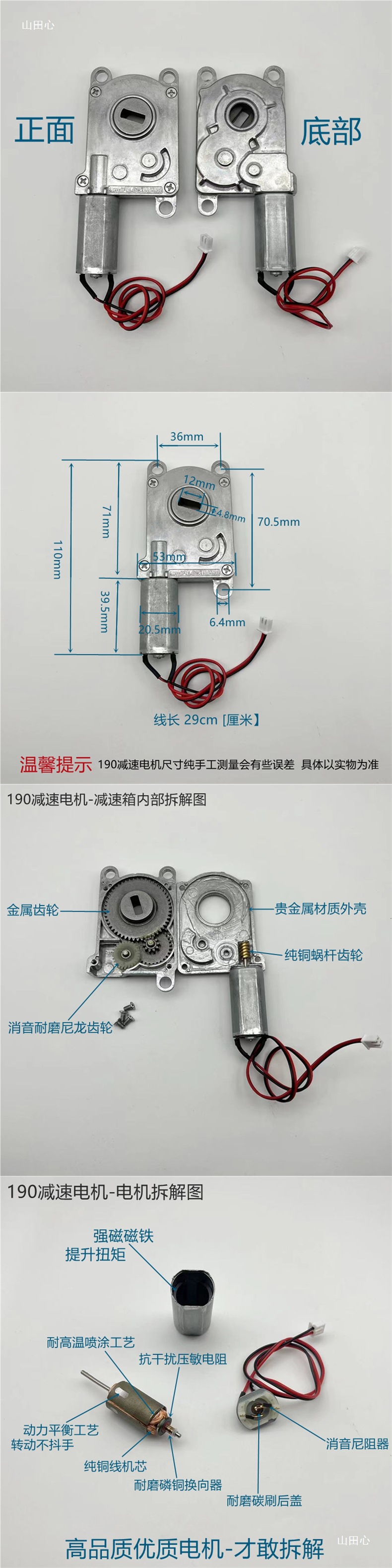 Редукторный двигатель 190, 4,5 В, 8 В, 12 В, полностью автоматический замок с отпечатками пальцев, умный замок, противоугонный дверной замок, вращающийся световой короб, производитель «сделай сам»