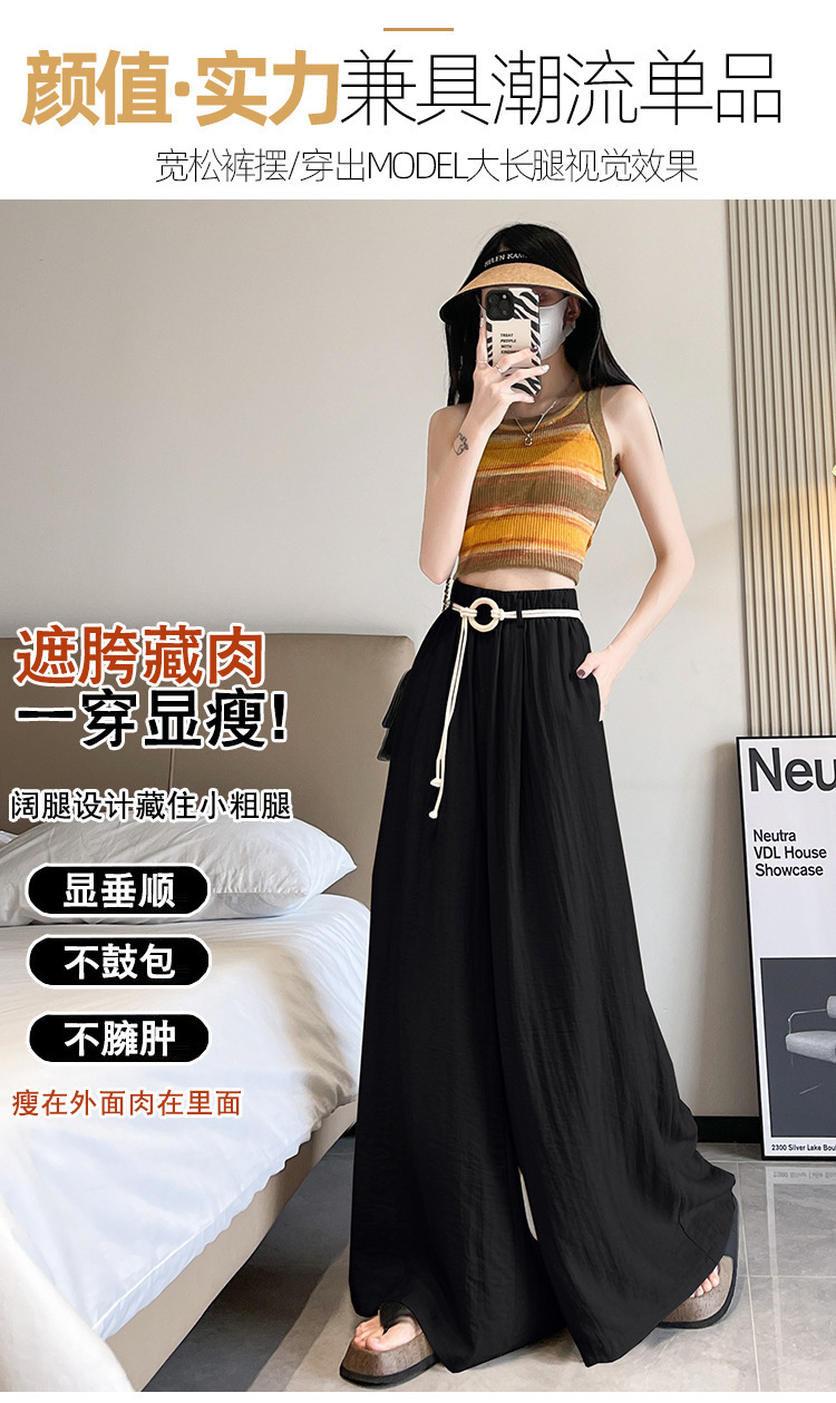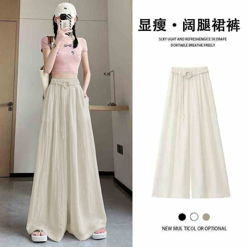 Женские весенне-летние прямые тонкие свободные драпированные брюки больших размеров 150kg из ледяного шелка в ленивом стиле Yamamoto, широкие брюки, юбка-брюки длиной до пола