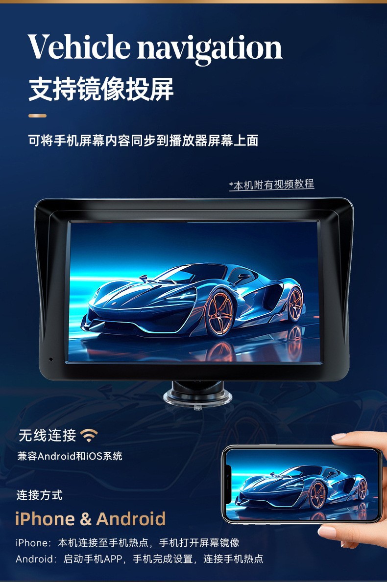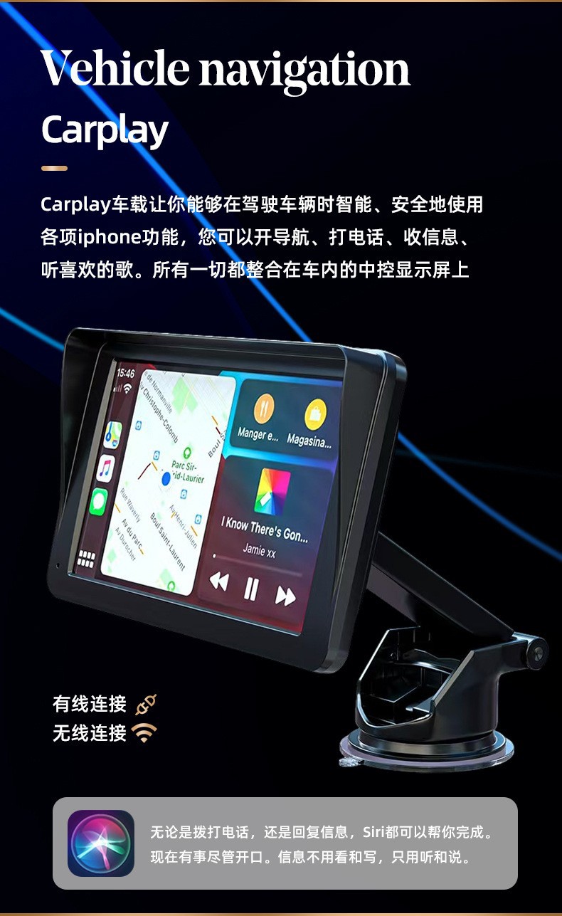 7inch carplay портативный экран беспроводной Carplay автомобиль Bluetooth MP5 HD реверсивный рекордер для вождения