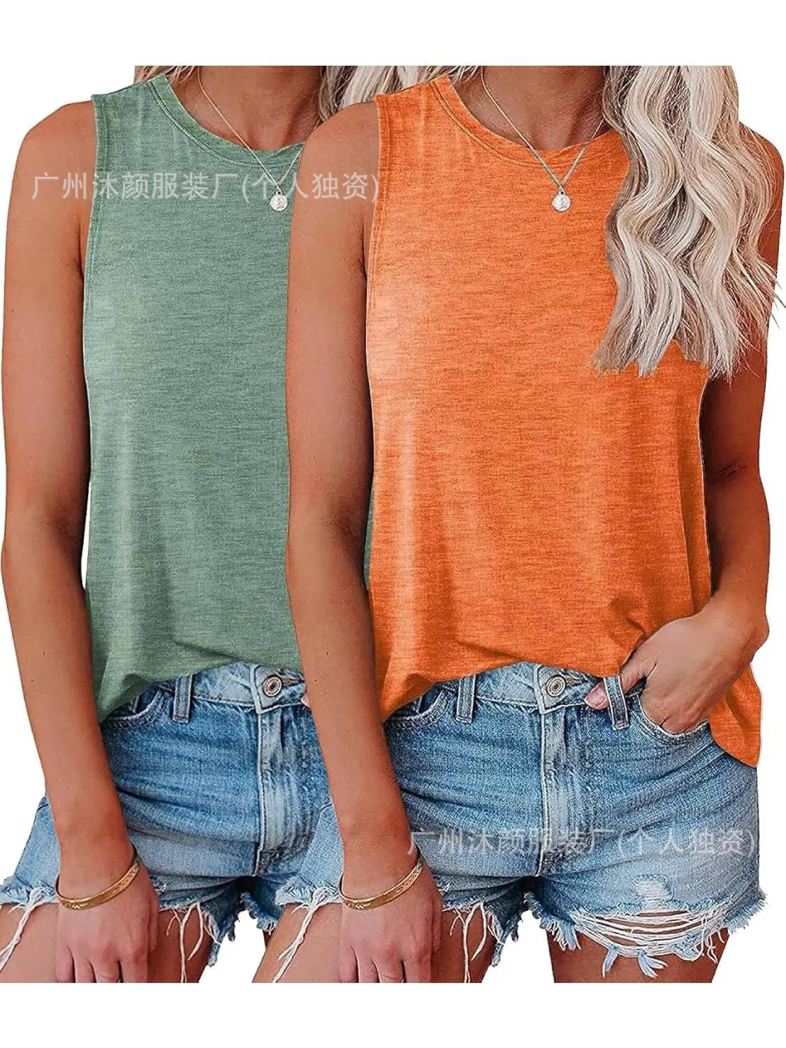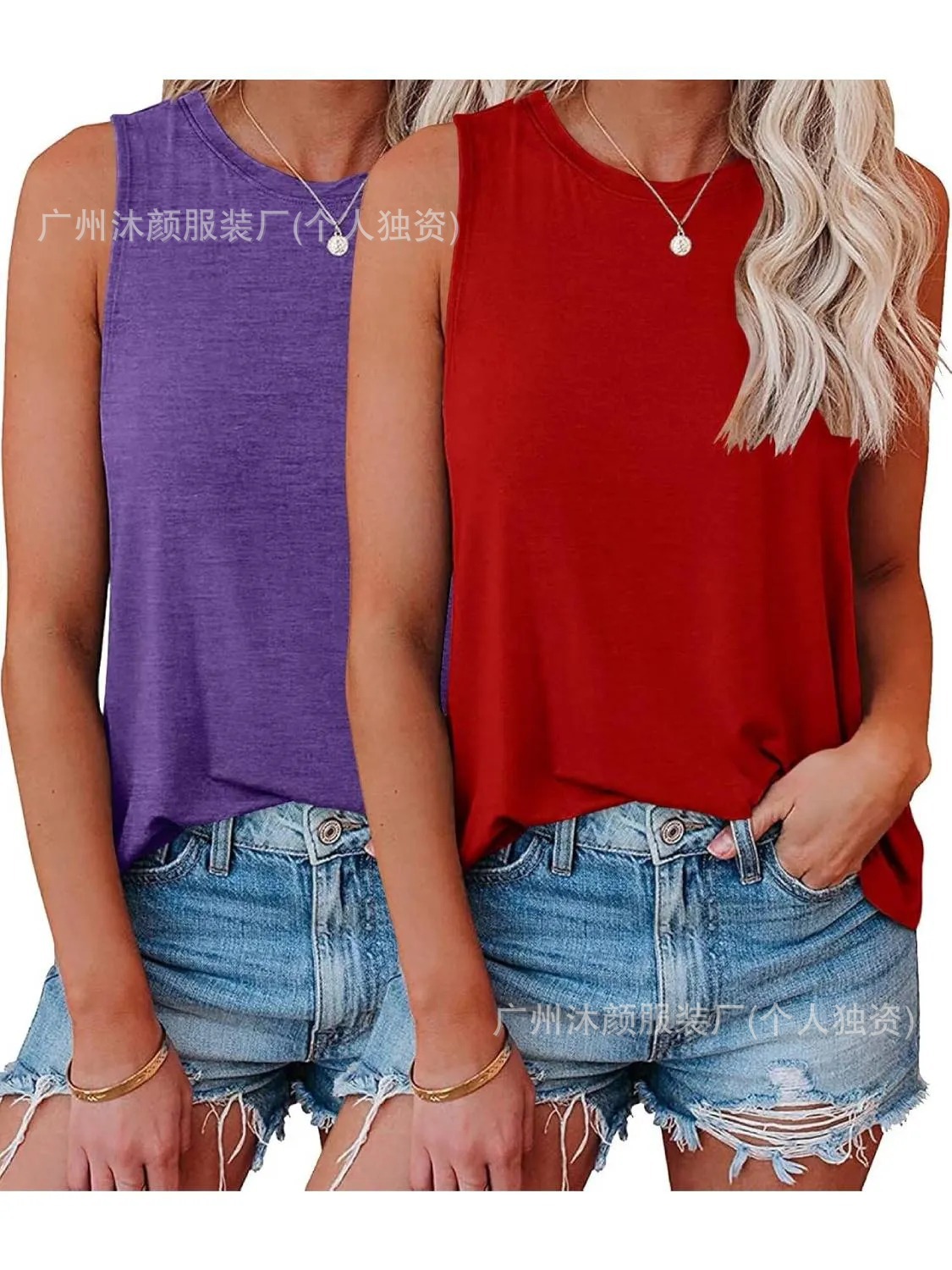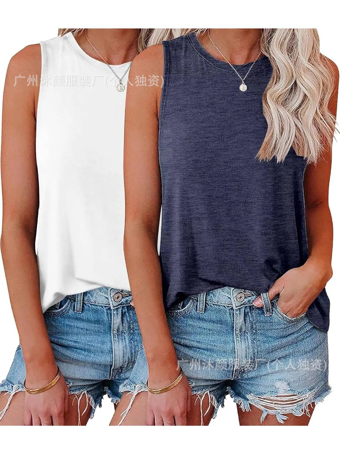 Кросс-бордерный комплект 2025 года: модный топ и футболка в европейско-американском стиле, ребристый, без рукавов, с круглым вырезом, однотонный, двухкомпонентный.