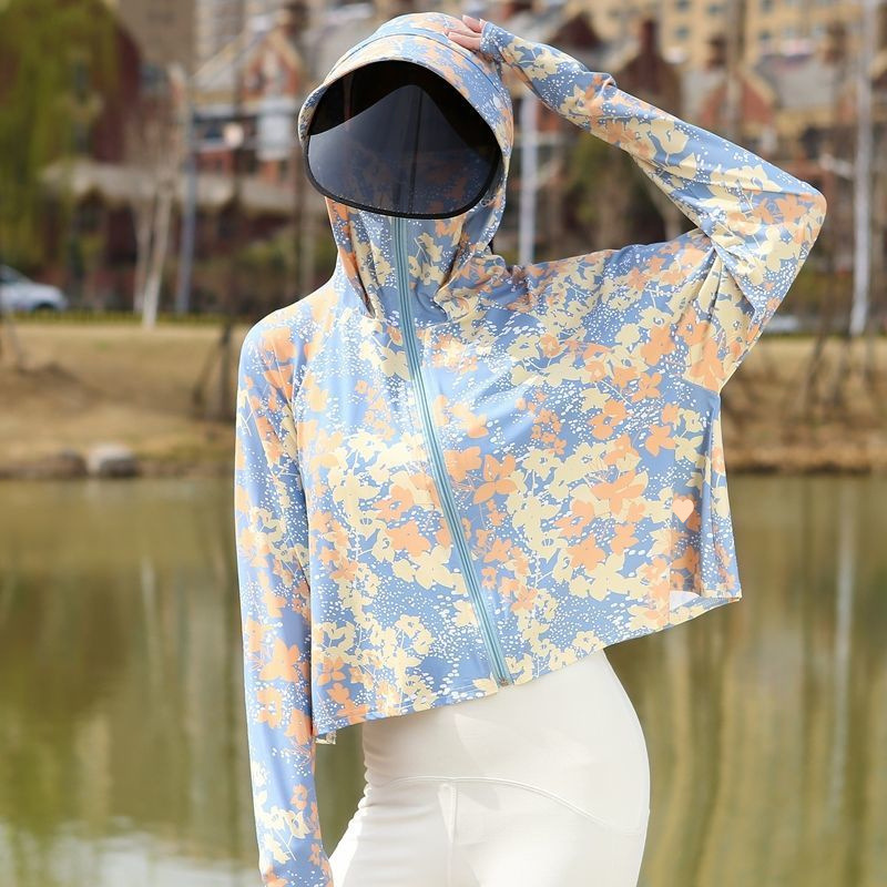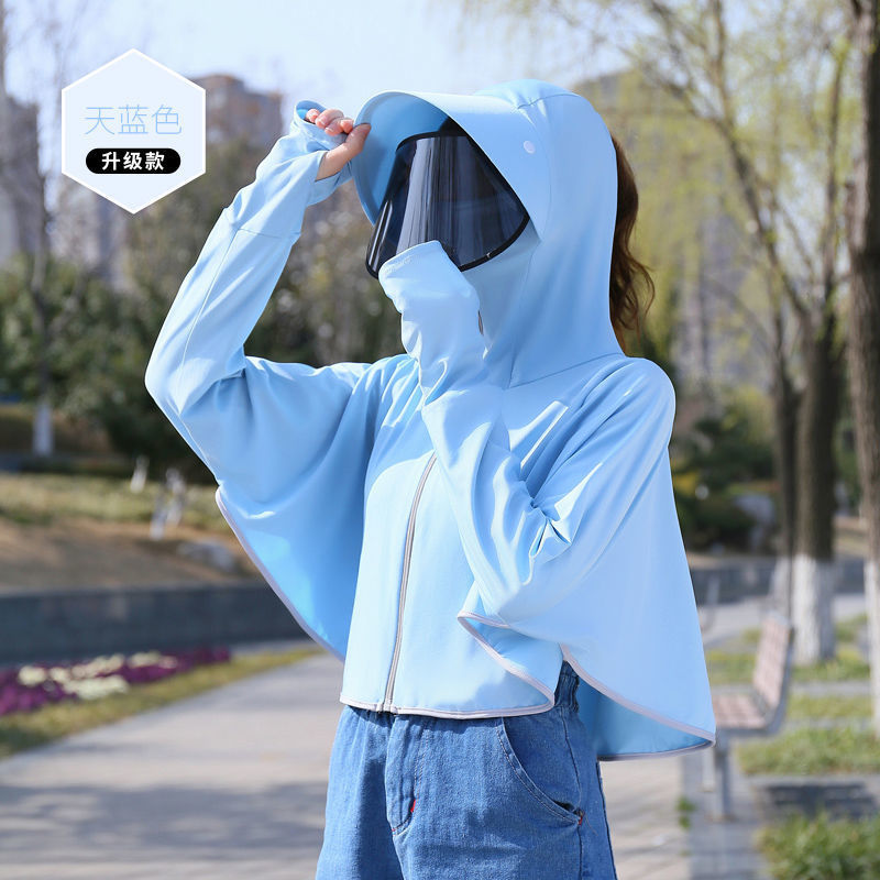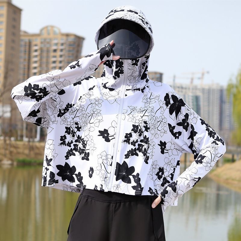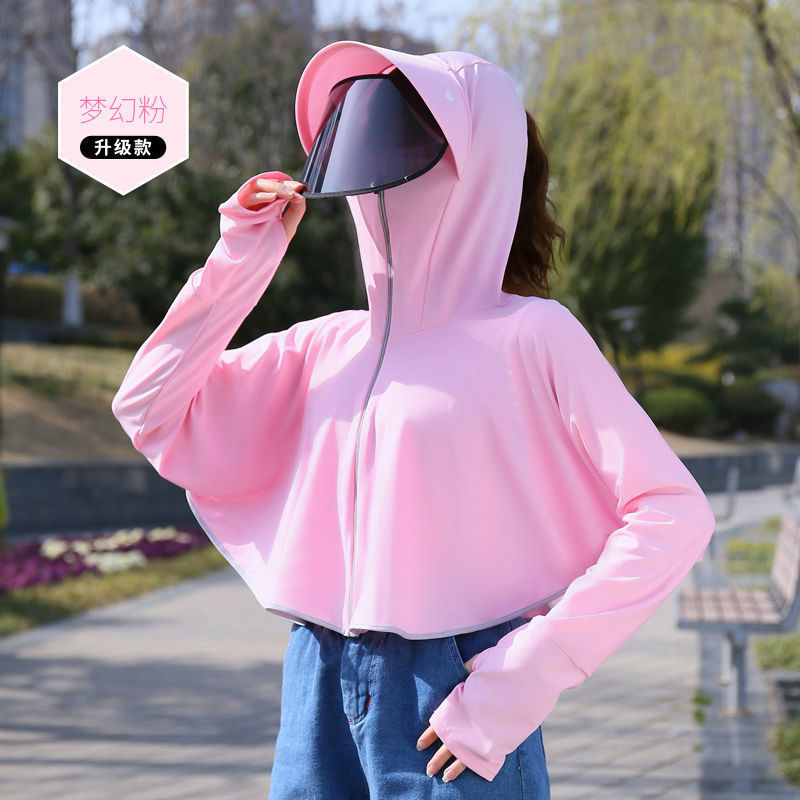 Женская куртка 2025 года нового стиля из ледяного шелка с длинными рукавами, короткая, с защитой от ультрафиолета, дышащая, с закрытием лица, в корейском стиле
