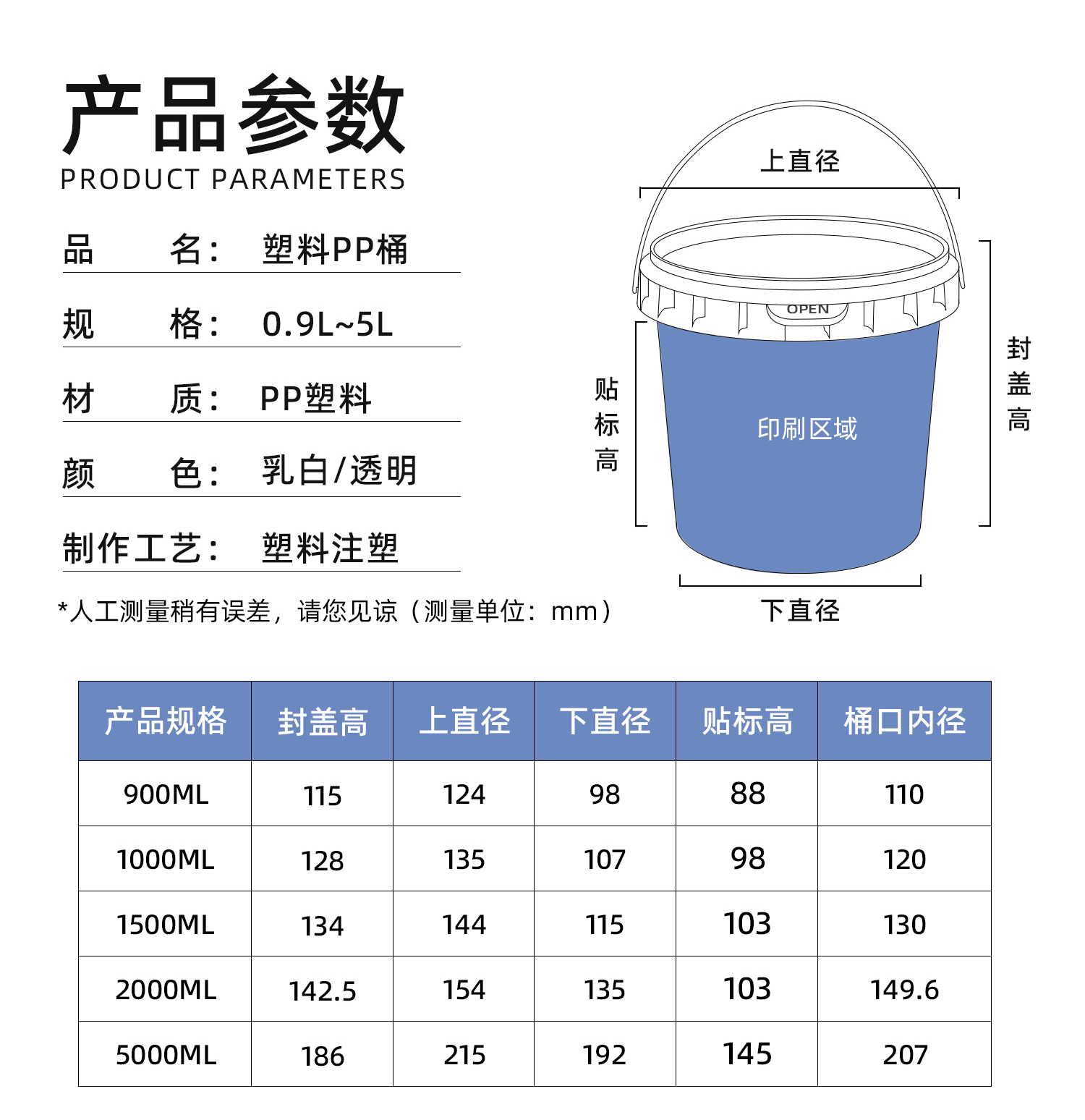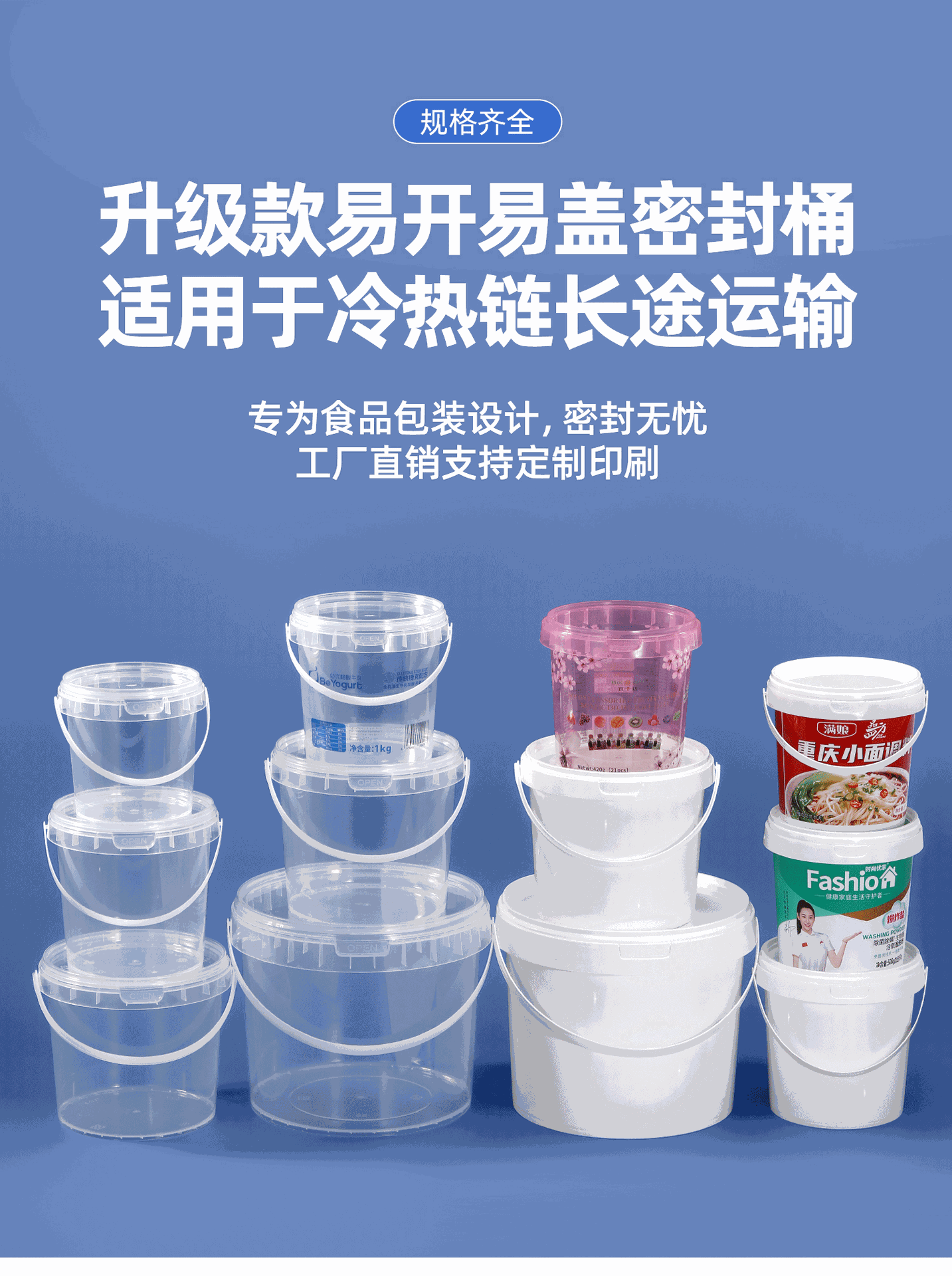 Герметичное прозрачное ведро с крышкой, круглое пластиковое ведро, пищевой полипропилен, на заказ 0.3-5 л, портативная упаковка для соусов и закусок