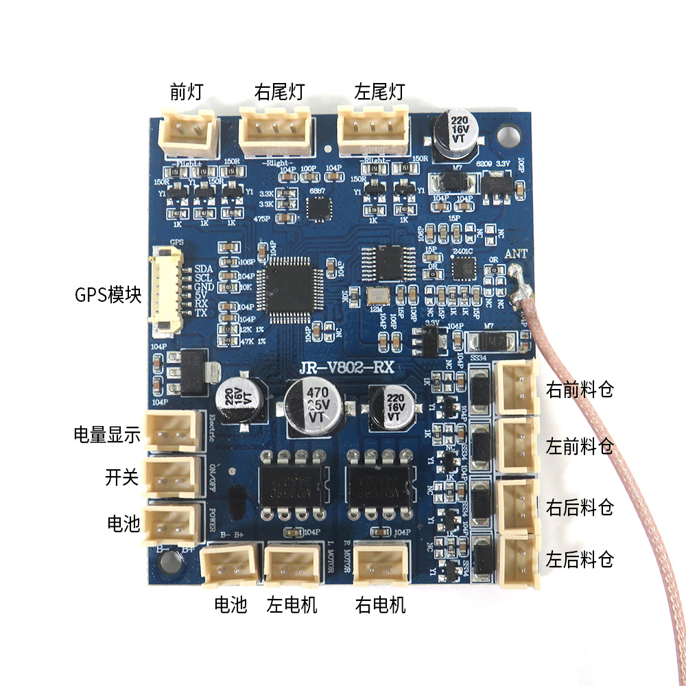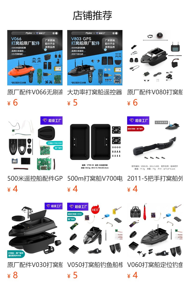 V802-01 Комплект платы дистанционного управления версии GPS (один комплект); V802-02 Пульт дистанционного управления версии GPS (один); V802-03 Монтажная плата корпуса версии GPS (одна); V802-04 Крышка батарейного отсека версии GPS (одна); Комплект силового агрегата V802-05 (один комплект); Ручка бункера V802-06 (комплект); Контейнер для хвостовиков V802-07 в сборе (комплект); V802-08 Абажур в сборе (комплект); V802-09 Комплект светодиодных фонарей (один комплект); V802-10 аксессуары для ручек лодки (комплект); Индикатор заряда батареи V802-11 (комплект); Антенна V802-12 (одна); V020-01 Комплект аксессуаров для силоса (один комплект); Набор аксессуаров для переключателя V700-05; V020-14 водонепроницаемая травяная крышка (пара); 2011-5.022 Лопасти пропеллера (пара); 2011-05-208(V020-12)-Черно-красный провод (справа) мотора (один); 2011-05-209(V020-13)-Черно-белый провод (слева) мотора (один); GPS-модуль V900-02 (один комплект); V020-16 USB-кабель для зарядки; 2011-5-013 Европейское зарядное устройство; 2011-5-014 Зарядное устройство стандарта США; 2011-5-015 Зарядное устройство британского стандарта; Автомобильное зарядное устройство 8,4 В, 1 А; Сумочка (размер: 60*27*23см); Рюкзак (размер: 29*20*58см); рама лодки; 2011-5.009 Аккумулятор 7,4 В, 5200 мАч; V900-06 Аккумулятор 7,4 В, 12000 мАч; V050-13 Аккумулятор 7,4 В, 18000 мАч; Солнцезащитные очки для активного отдыха с черной оправой и золотыми линзами с ртутным покрытием; Батарейки АА (4 шт.); V030-04 Комплект аксессуаров для эхолота; Эхолот XJ-01
