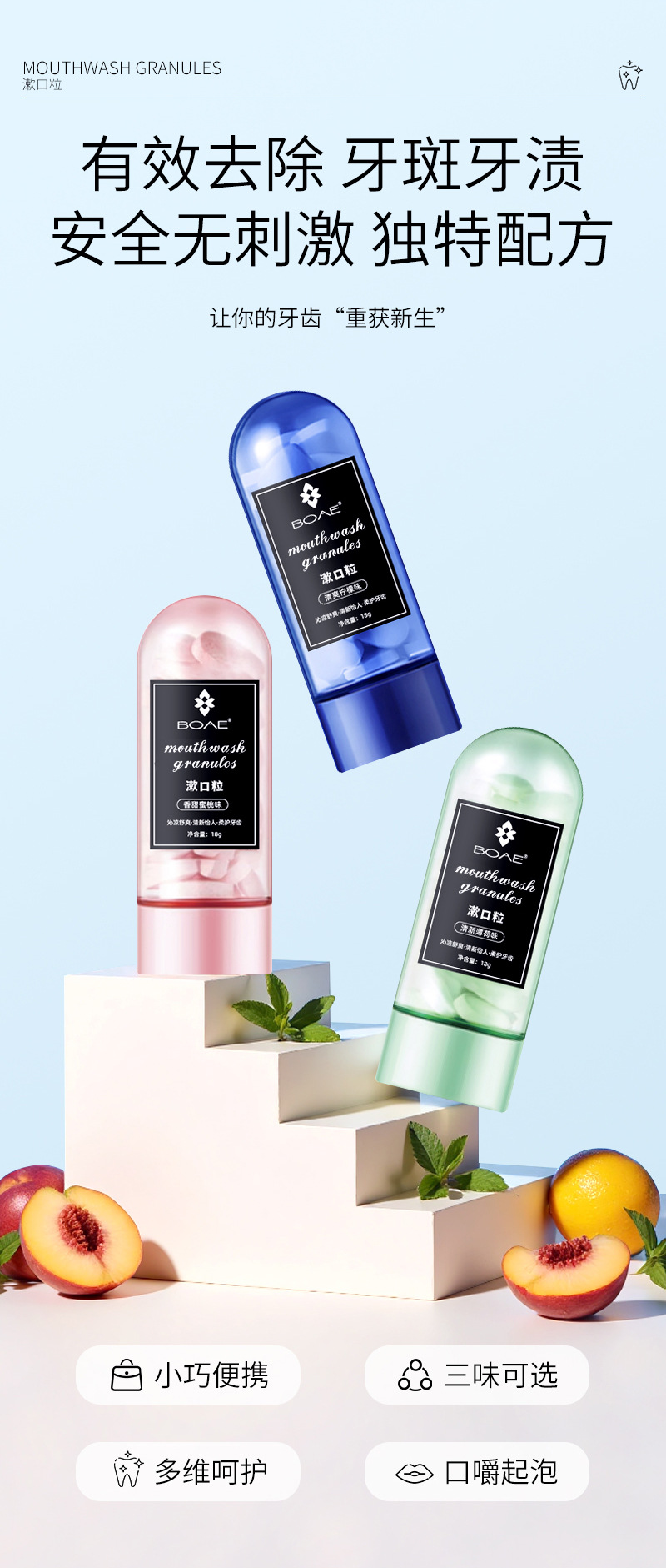 Таблетки для полоскания рта BOAE (персик); Таблетки для полоскания рта BOAE (мята); Таблетки для полоскания рта BOAE (лимон)