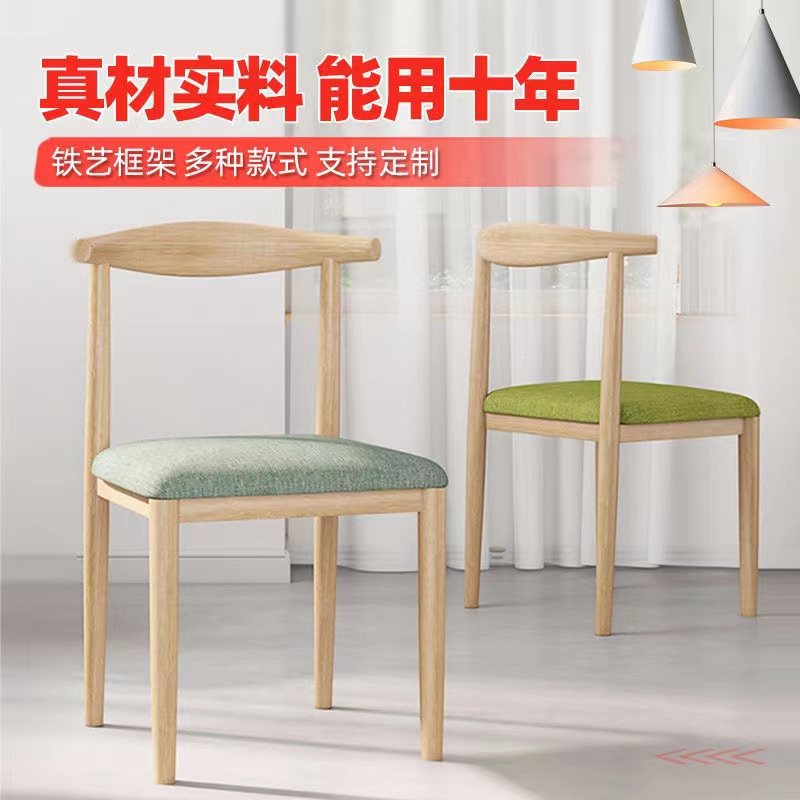 Скандинавский обеденный стул, простой современный ресторанный стул, табурет со спинкой для отдыха, домашний письменный стул, стул с железным рогом из искусственного дерева