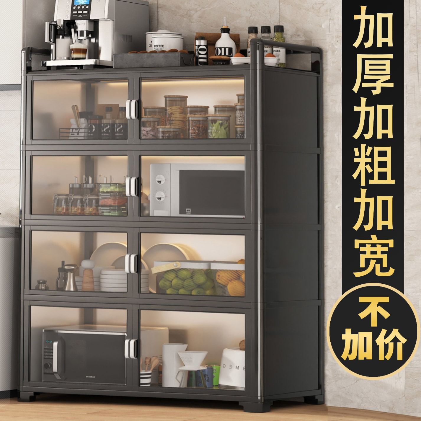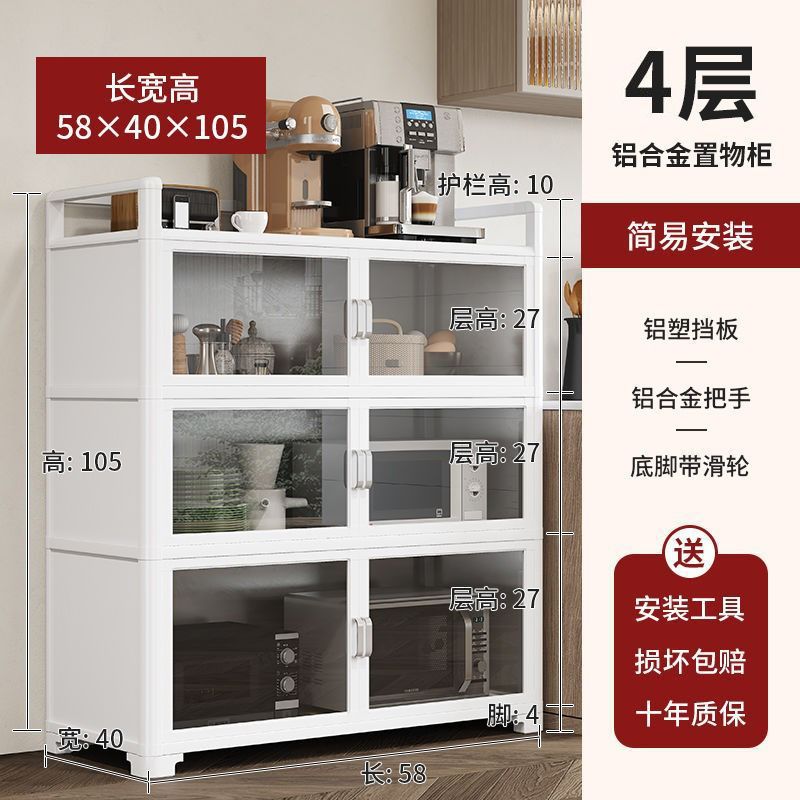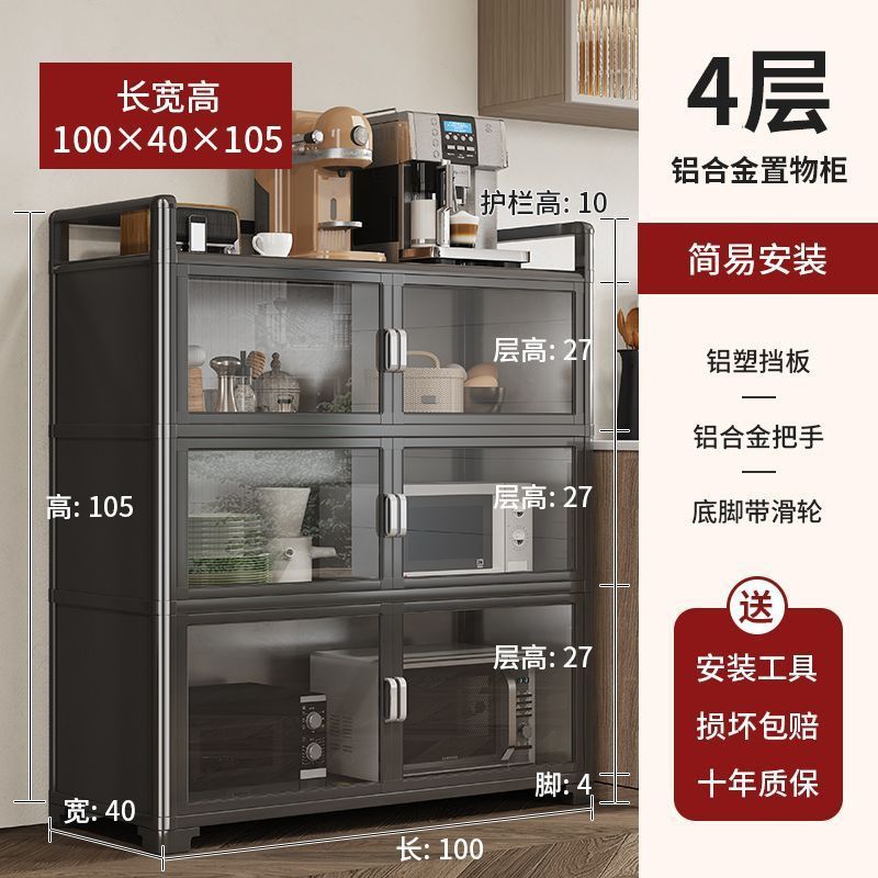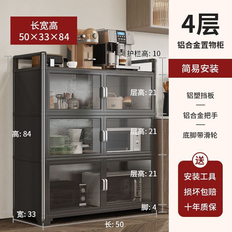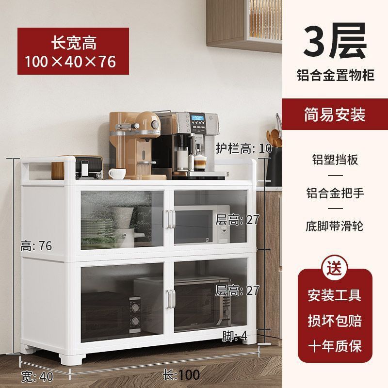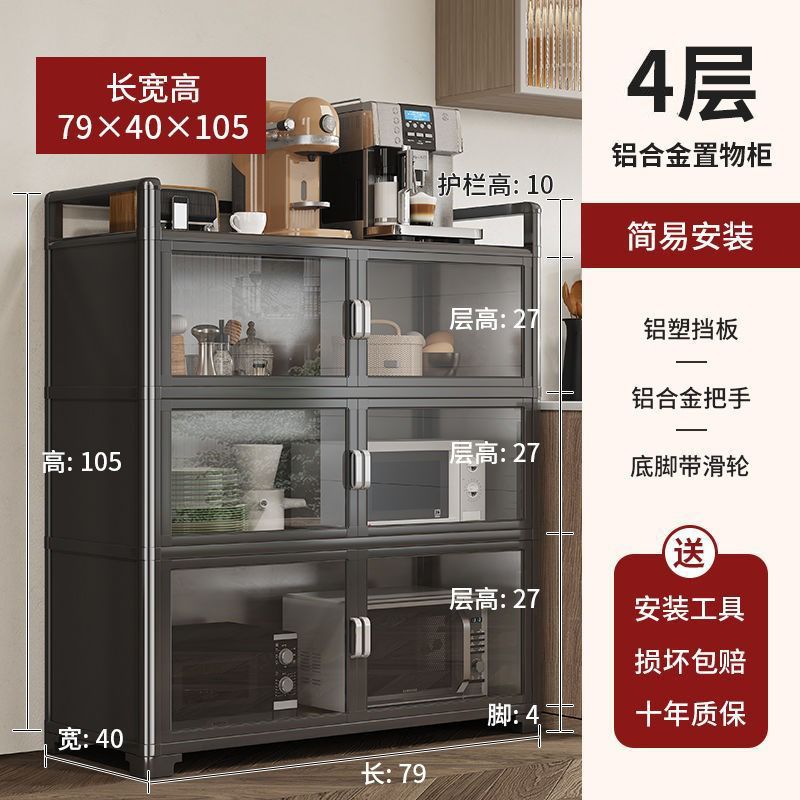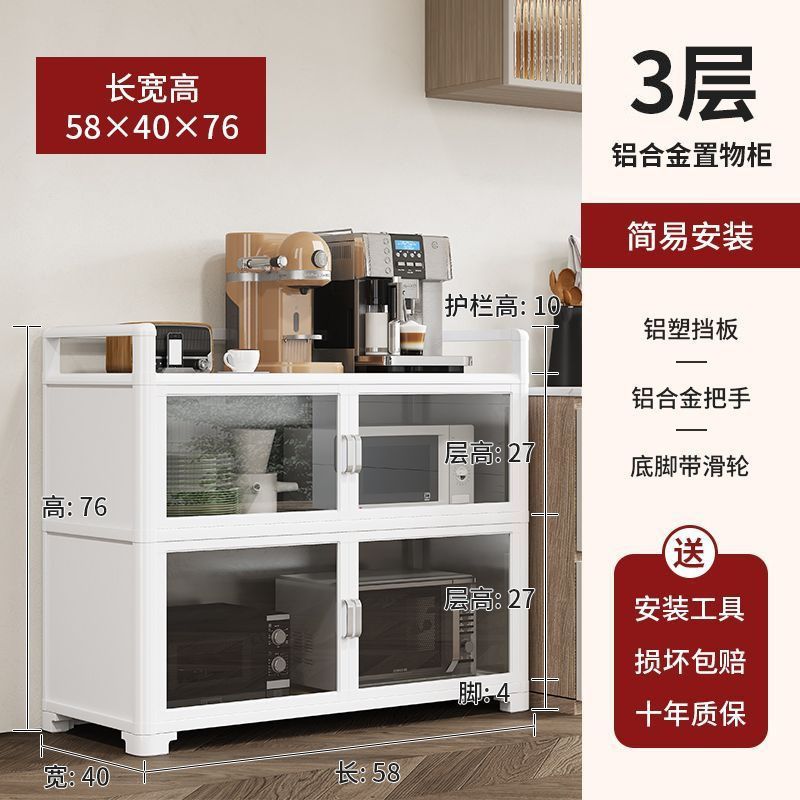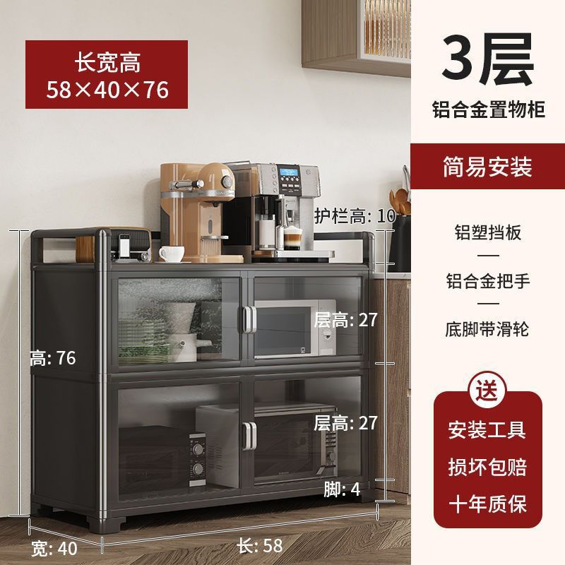 Кухонная полка из алюминиевого сплава, напольная, многослойная, для хранения микроволновой печи, кастрюль и мисок, многофункциональный обеденный боковой шкаф для хранения