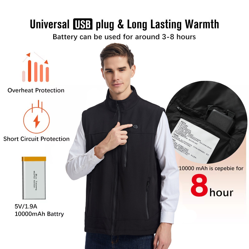 Жилет с трансграничным подогревом, мягкий зимний жилет американского размера для занятий спортом на открытом воздухе, USB-интерфейс, зарядка, умный жилет с электрическим подогревом и постоянной температурой