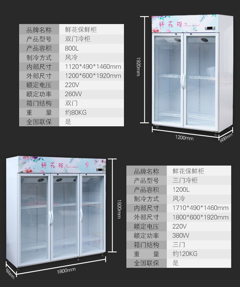 Трехдверный модернизированный цветочный шкаф 1200л.; Трехдверный цветочный шкаф из розового золота 1200л.; Модернизированный цветочный шкаф с двойной дверью 800л.; Двойная дверь из розового золота в стиле цветочного шкафа 800L; Однодверный модернизированный цветочный шкаф 400л.; Однодверный цветочный шкаф из розового золота, 400 л.; Мини-шкаф для цветов с одной дверью 80л.