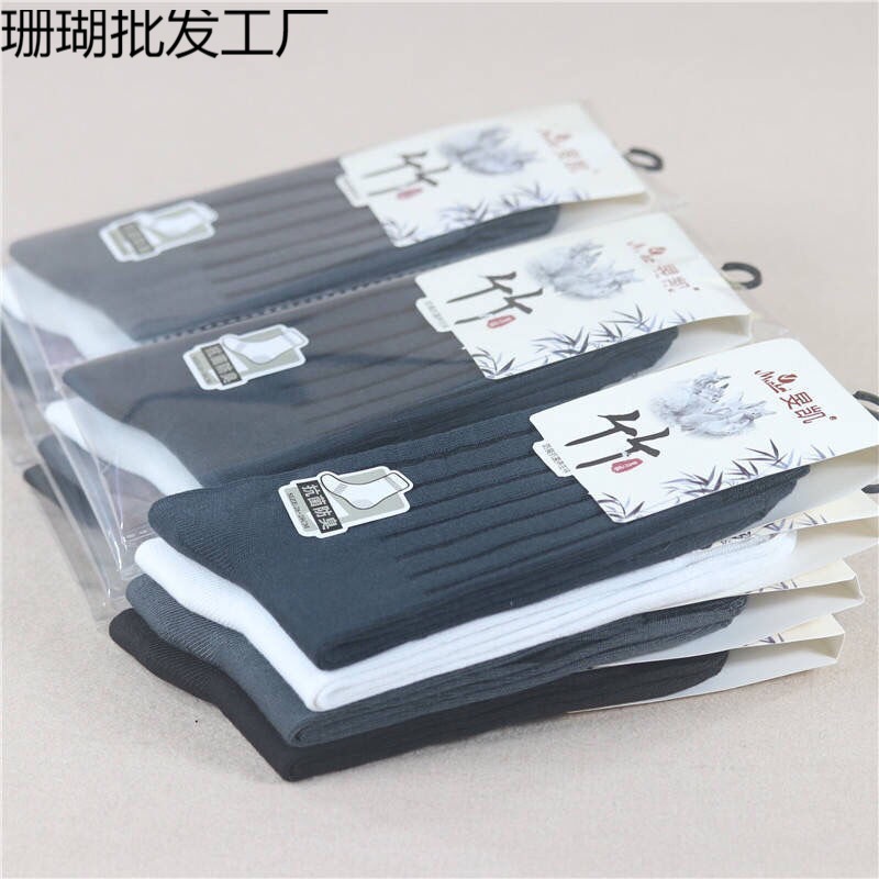 Мужские массажные носки с дезодорантом, осенне-зимние двойные утолщенные новые хлопковые нескользящие носки в полоску с бамбуковым углем в индивидуальной упаковке, хлопок//